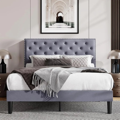 Original price $463.99 - Original price $859.99Original price $463.99 - Original price $859.99Original price $463.99$370.99 - $687.99$370.99 - $687.99Current price $370.99| /Bedroom furniture full bed frame, velvet upholstered platform bed, no springs required, light grey