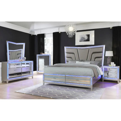 Original price $23,260.99Original price $23,260.99 - Original price $23,260.99Original price $23,260.99Current price $18,608.99$18,608.99 - $18,608.99Current price $18,608.99| /Bedroom Furniture Set Luxury 5 Pc Queen Bed Silver Nightstand Dresser Chest Cabinet Cupboard Forcer with Led