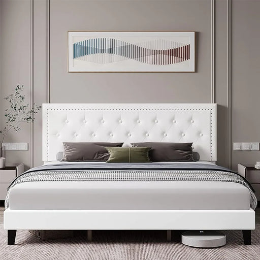 Original price $525.99 - Original price $893.99Original price $525.99 - Original price $893.99Original price $525.99$420.99 - $714.99$420.99 - $714.99Current price $420.99| /Bedroom furniture: full-size bed frame with adjustable headboard, button-tufted faux leather, upholstered, white