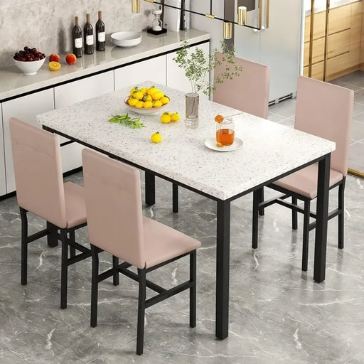 Original price $948.99Original price $948.99 - Original price $948.99Original price $948.99Current price $677.99$677.99 - $677.99Current price $677.99| /Compact Furniture 5-Piece Dining Room Table Set Faux Marble Table with 4 PU Leather Upholstered Seats, White