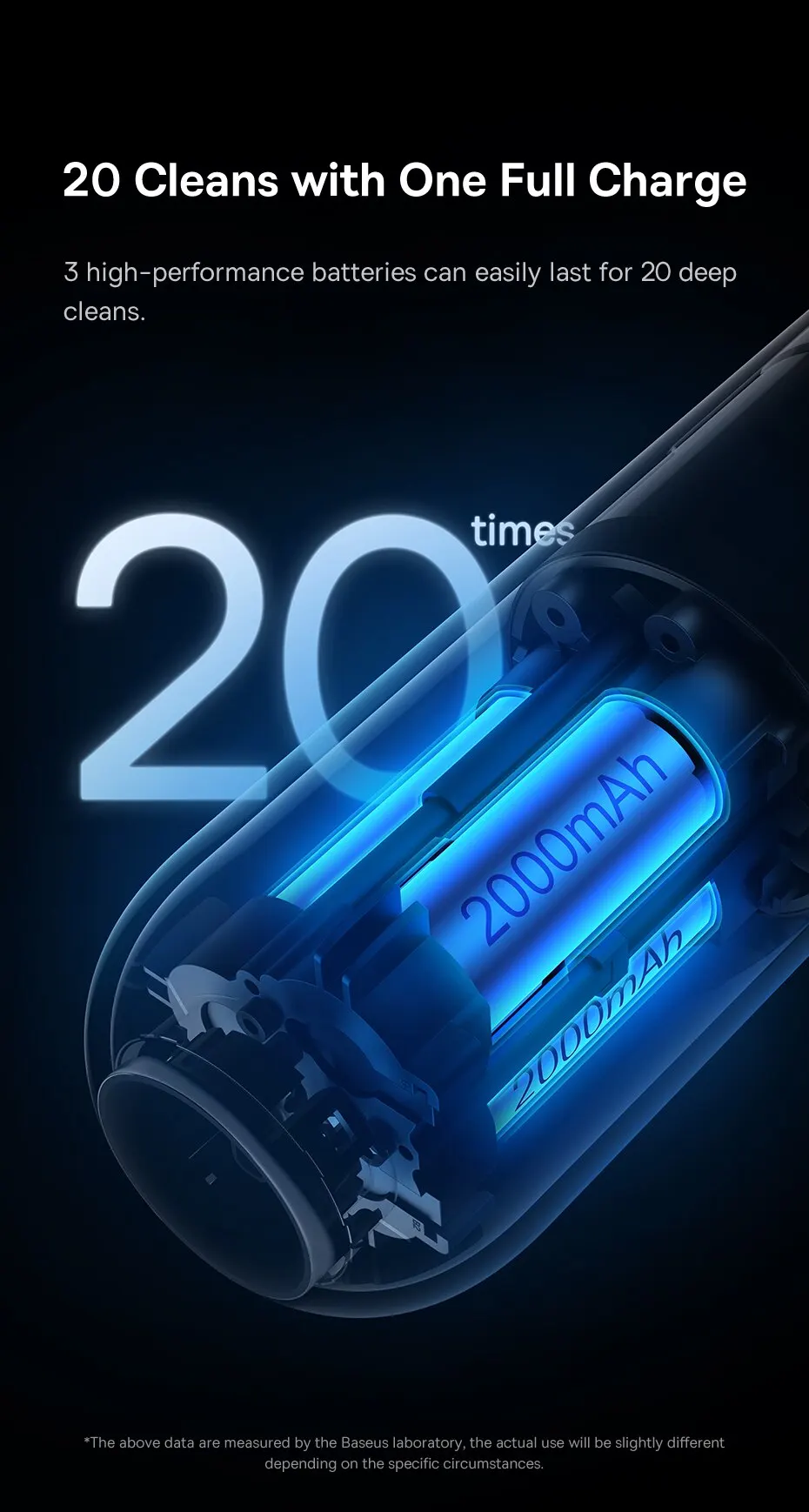 3. 6000mAh Large Capacity, 20 Cleans with one full charge