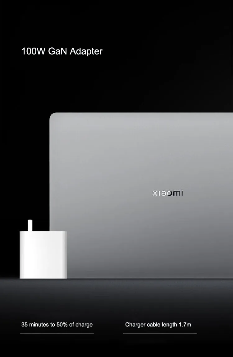 56 watt -hour (rated) battery capacity, 100W GAN power adapter,