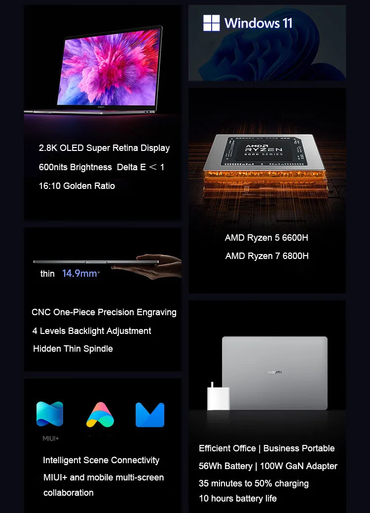 Original Xiaomi Book Pro 14 Laptop 14 Inch 2.8K 90Hz OLED Screen Notebook AMD R5-6600H R7-6800H 16GB 512GB SSD Laptop Computer