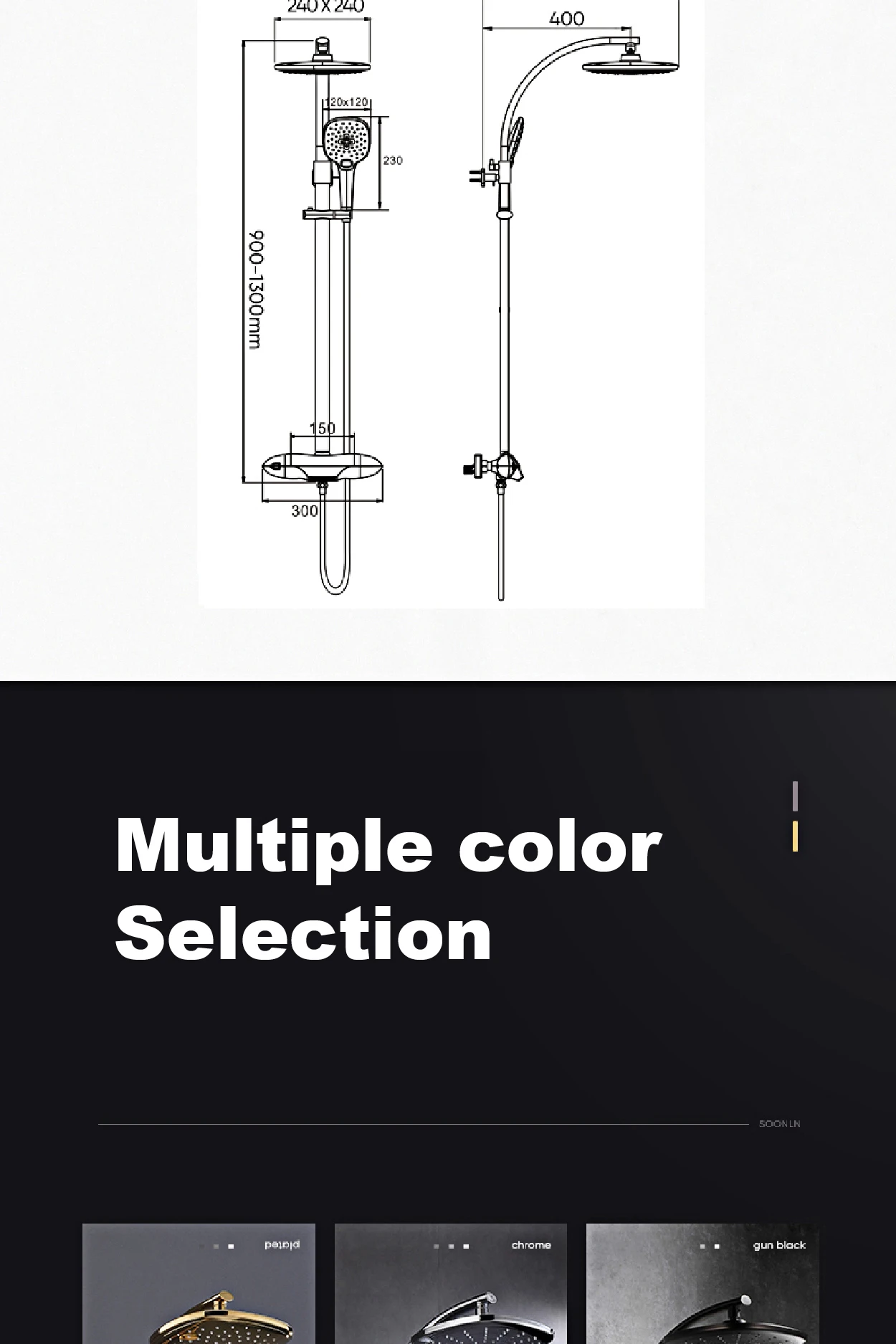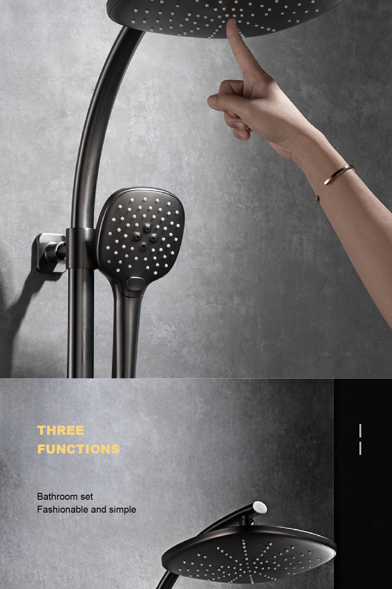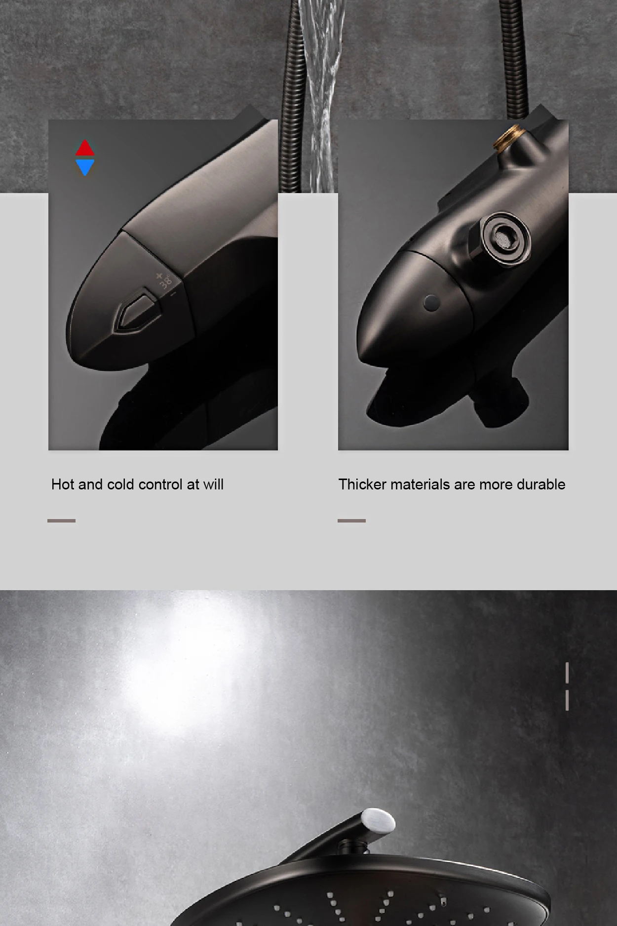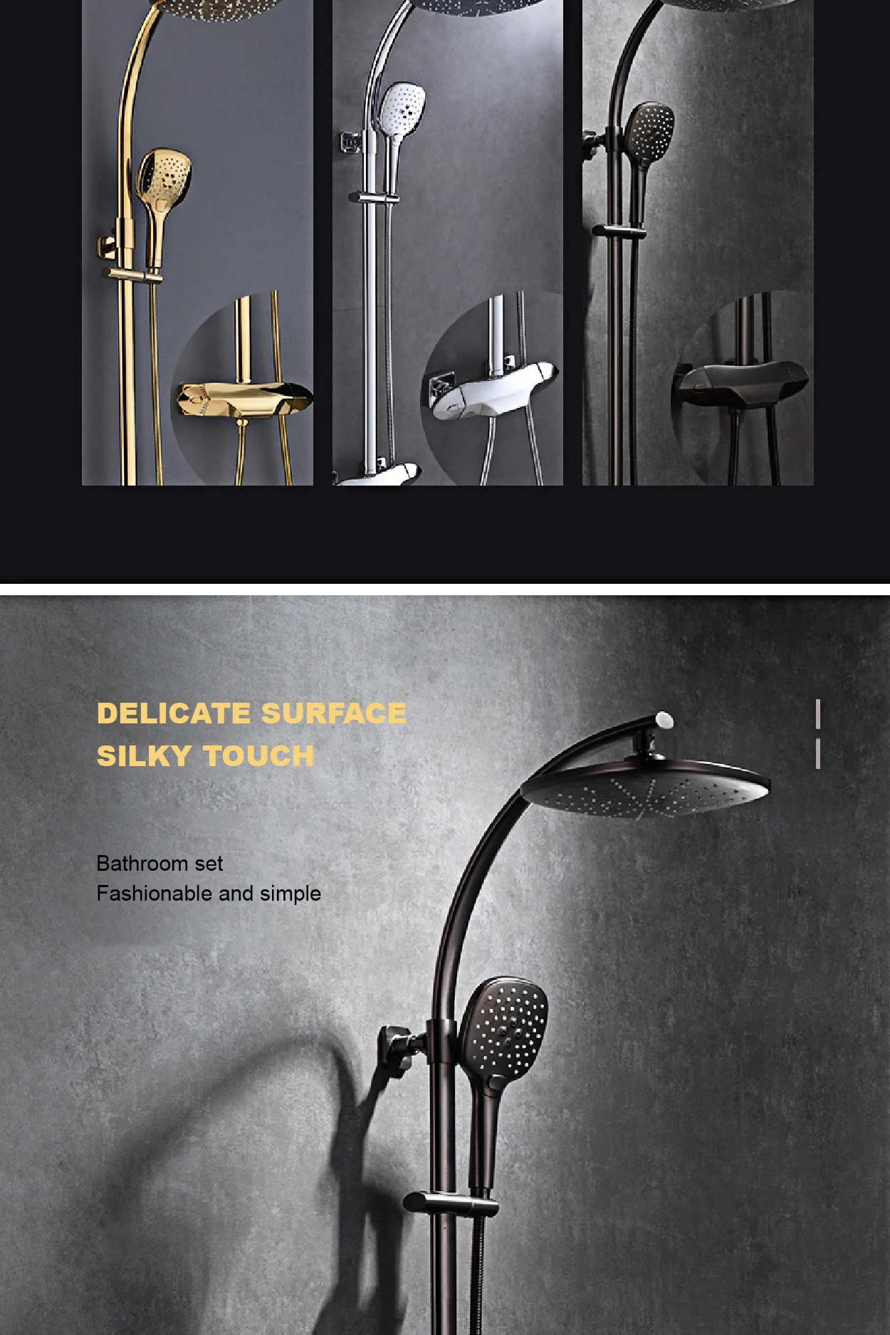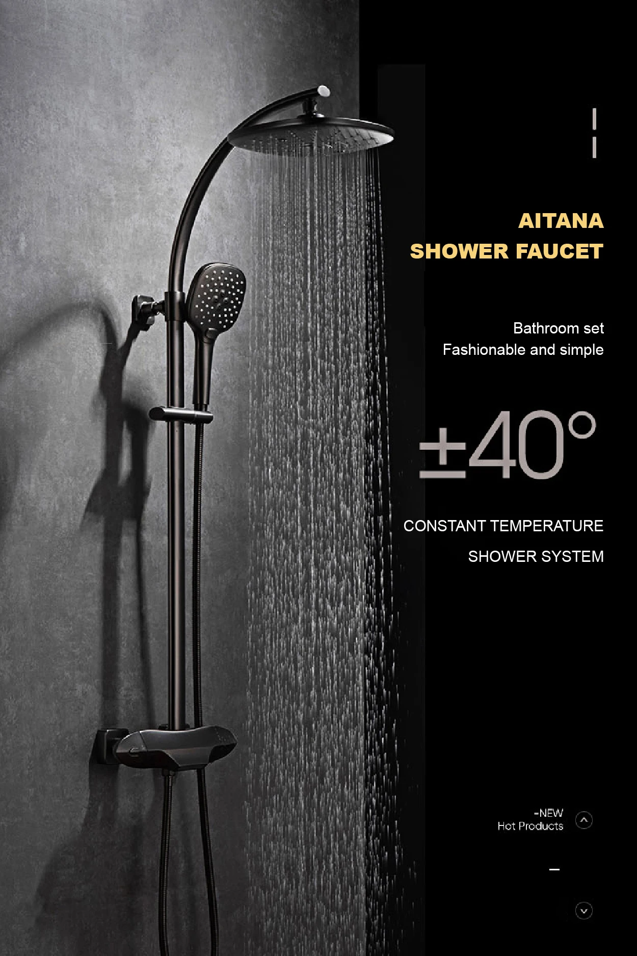 Luxury golden brass shower system with constant temperature design, dual control of cold and hot, 3-function bathroom faucet