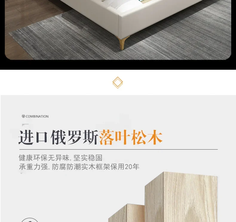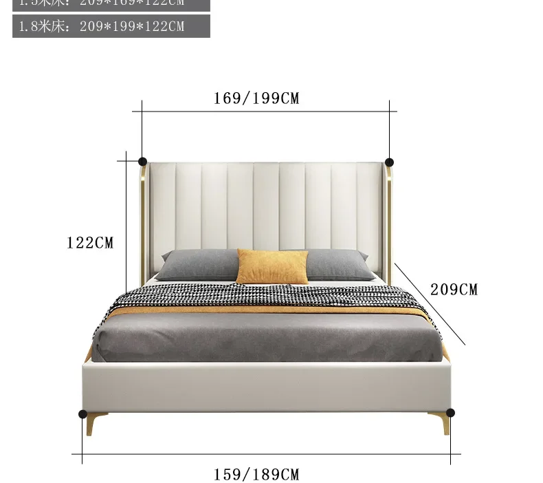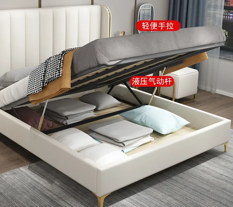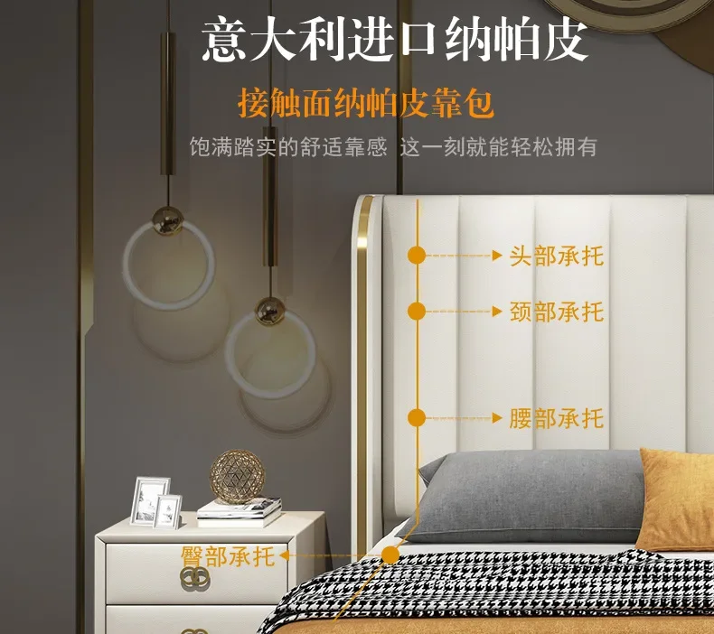 American Light Luxury Leather Art Bed Modern 1.8m 1.5m Simple Wedding Bed Crown Prince Bed Italian Minimalist Master Bedding Dou