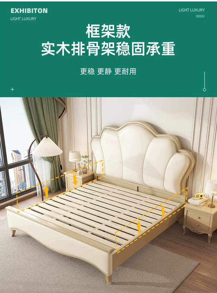 American Light Luxury Modern Simple Twin Master Bedroom French Cream Style Princess Bed Petal Bed