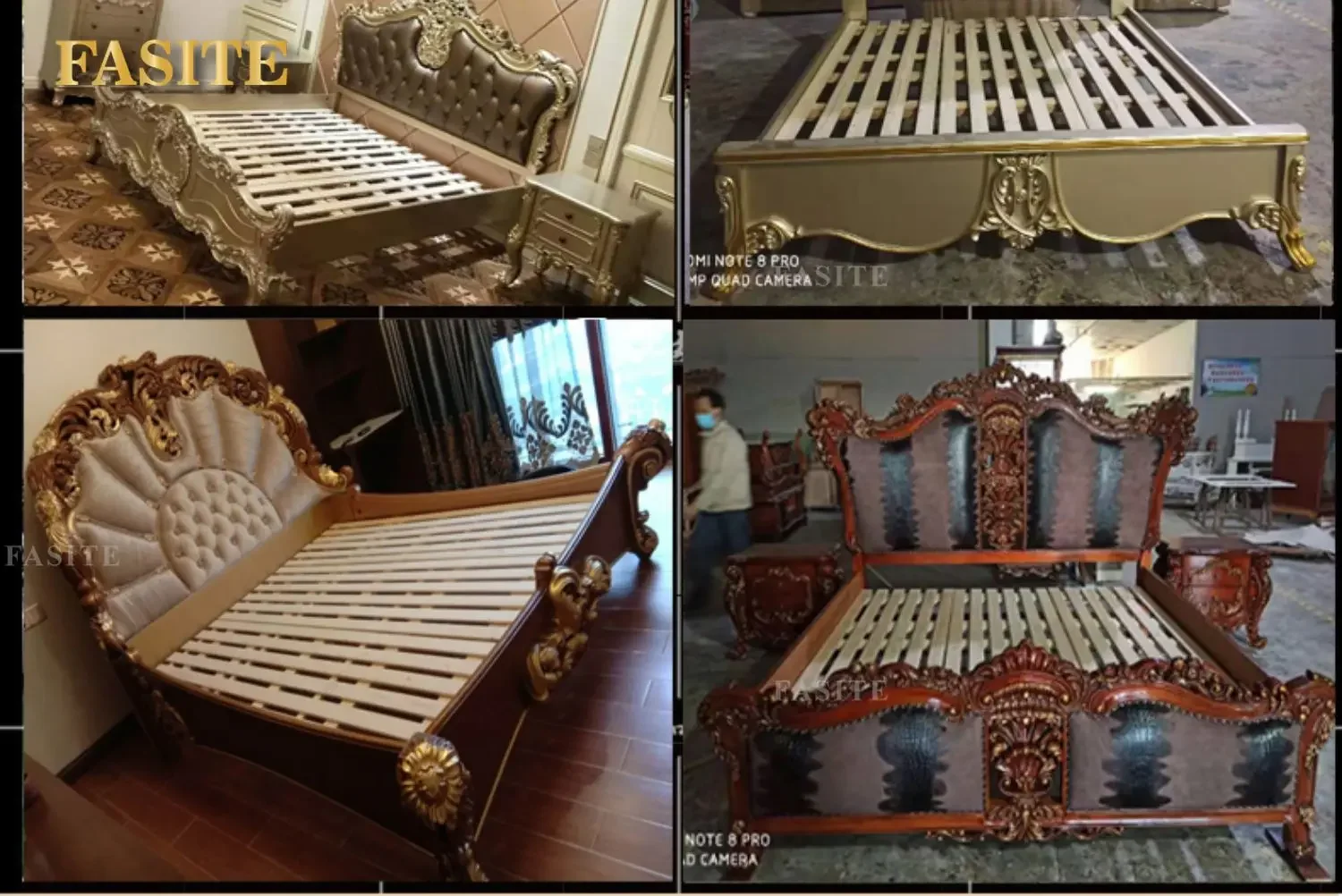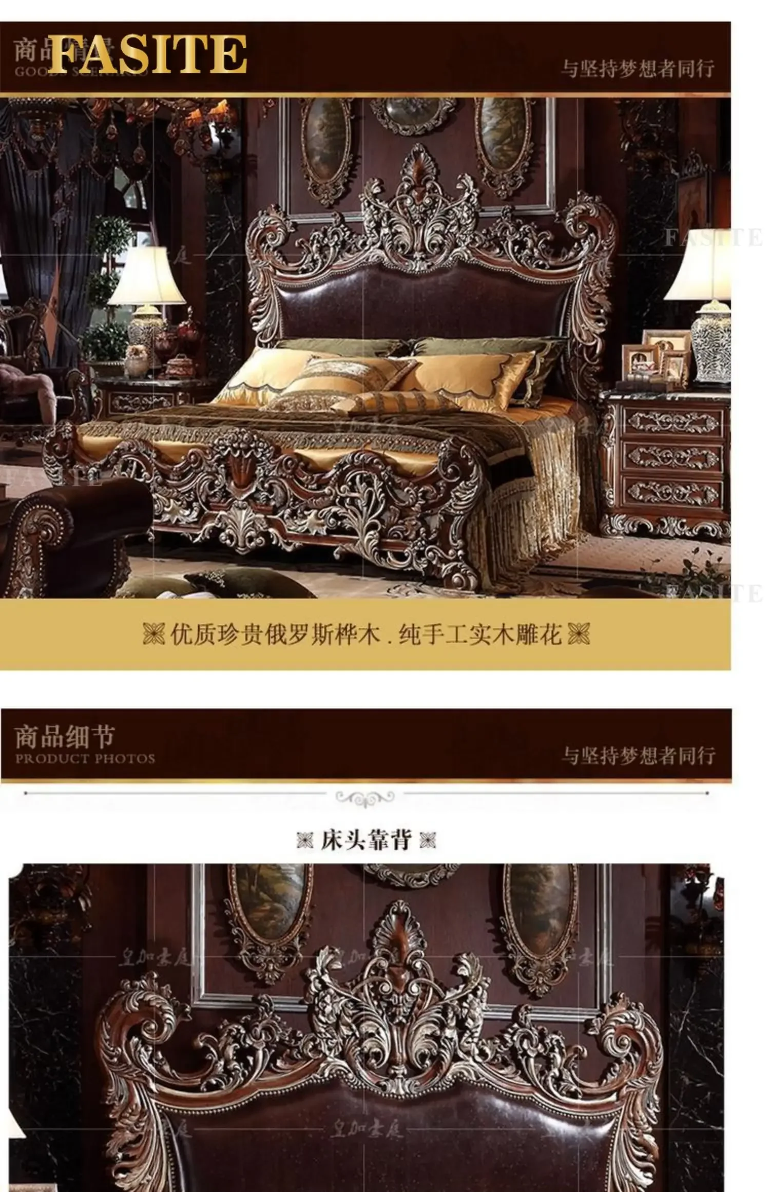 American solid wood bed 1.8m wedding bed double bed European carved master bedroom furniture Luxury leather bed