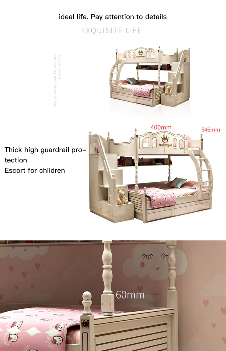 American Style Children Beds Bunk Solid Wood Luxury High Children Beds Space Saving Camas De Dormitorio Bedroom Furniture