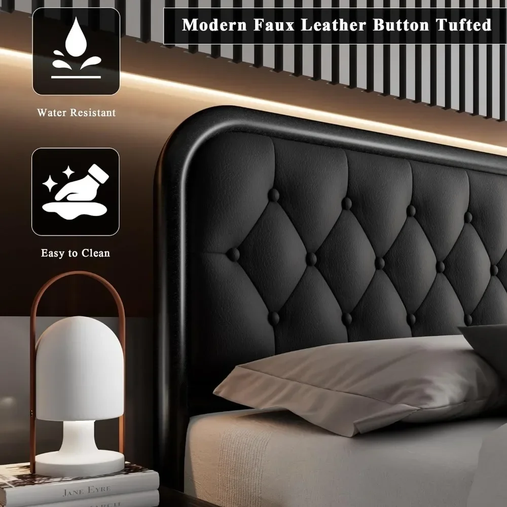 Bed frame Heavy-duty bed frame with faux leather headboard Bedroom furniture 12" under-bed storage Black platform bed