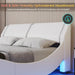 - 【UNIQUE WAVE LIKE CURVE DESIGN】full modern LED platform bed frames used wave Like Curve and Low Profile upholstered design for ultimate comfort and looks, showcasing a futuristic design. It's covered by durable Faux PU Leather, soft and anti-collision to ensure family safety.The overall dimension of the full size low profile led bed frame is 87.8'' L x 55.2'' W x 27.2'' H.