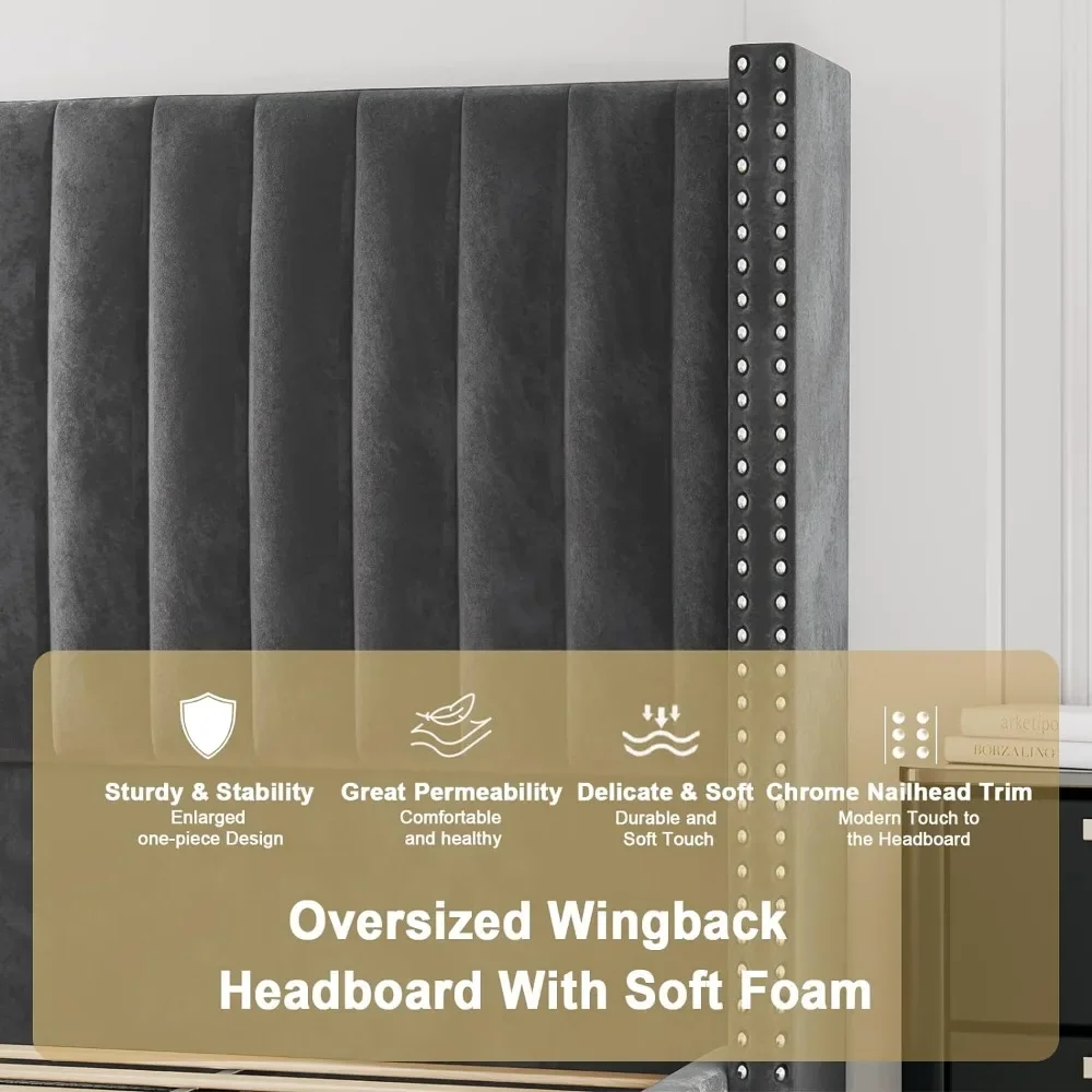 • Unique Wingback Design: Nailheads decorate the wingbacks, giving the bed frame a unique sense of style and sophistication, making your bedroom full of personality and taste.