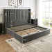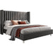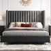Bed Frame, Tufted Velvet with Vertical Channels, No Springs, Easy To Assemble, Grey, King Size Bed Frame