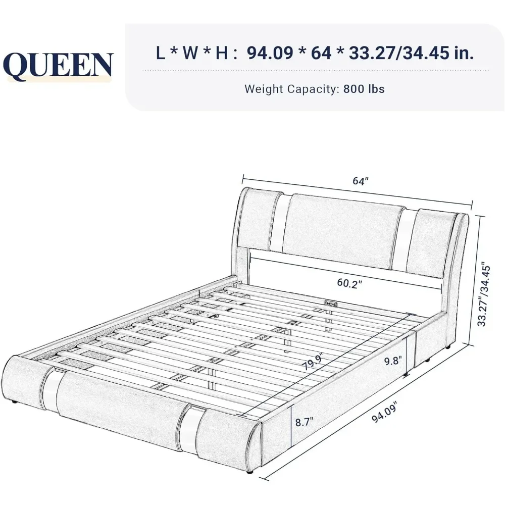 • Adjustable Headboard: The bed's curved headboard is designed for you to lean and read on bed in a more comfortable way. The headboard can be adjusted from 33.5" to 35.4"(Top to ground). 10-12'' mattress recommended.