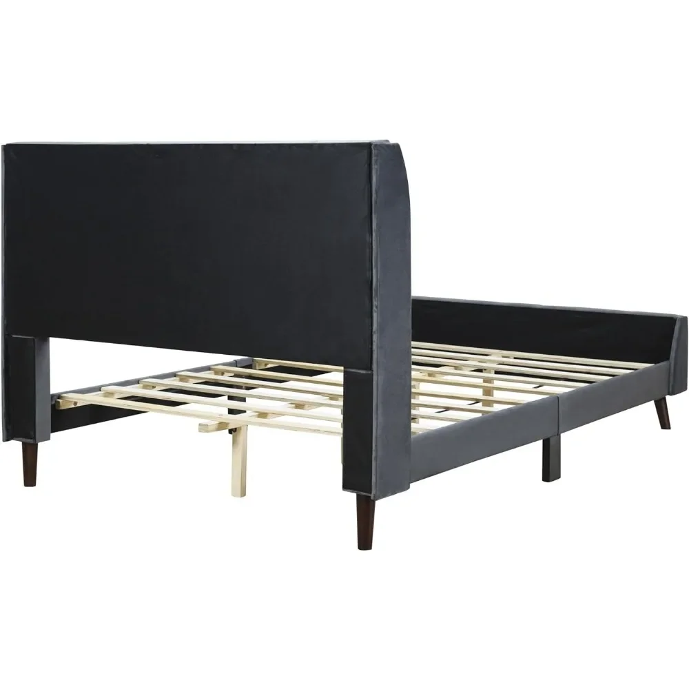 Bed FrameUpholstered velvet full-size platform bed with headboard and footboard for easy assembly of bedroom bed