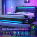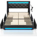 Bedroom bed frame with LED lights and charging station, easy-to-assemble upholstered with drawers, bedroom bed frame