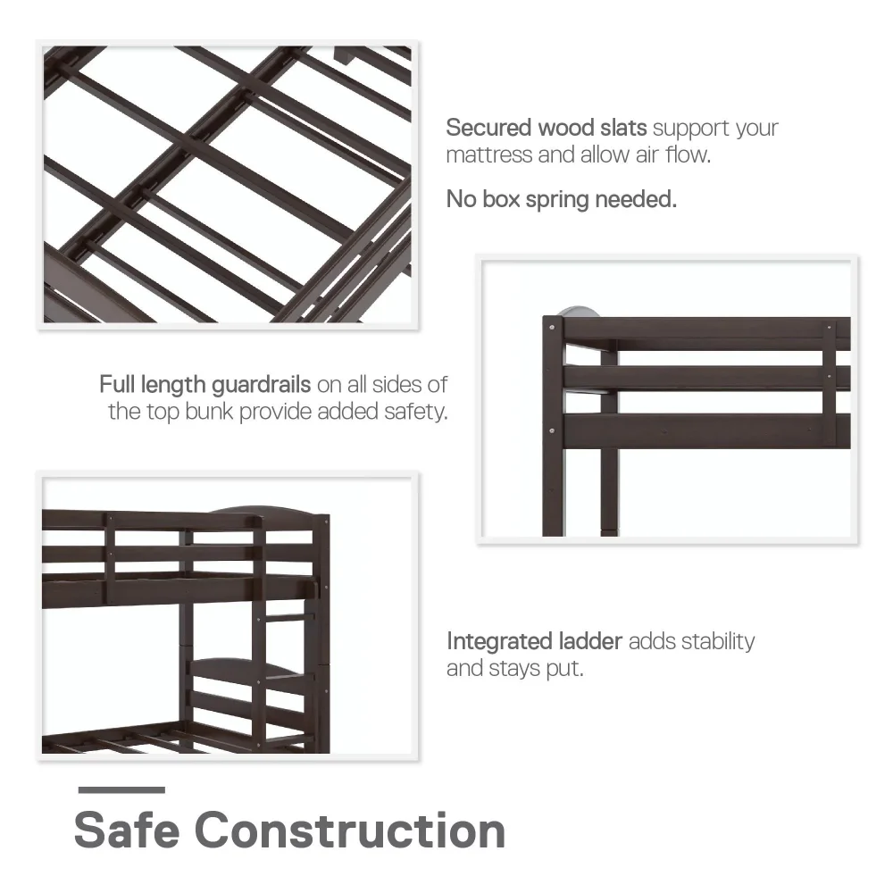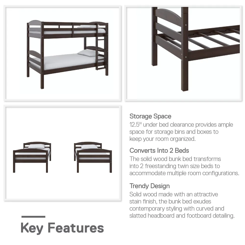 Better Homes & Gardens Leighton Solid Wood Twin-over-Twin Convertible Bunk Bed, Mocha bedframe bedroom furniture