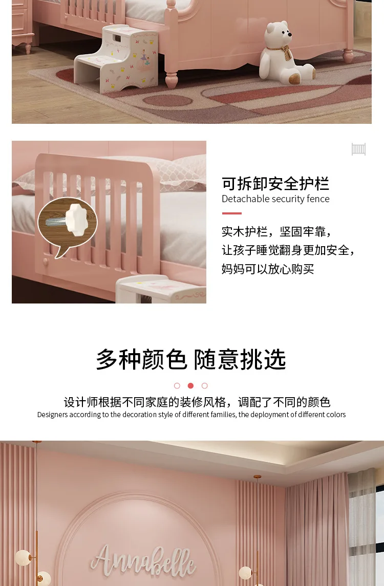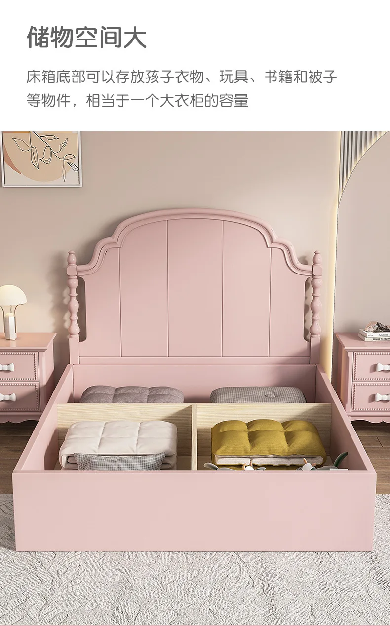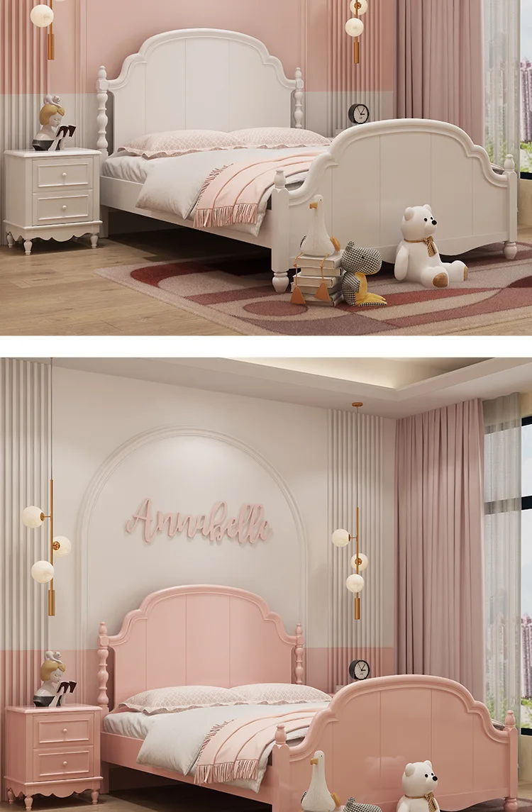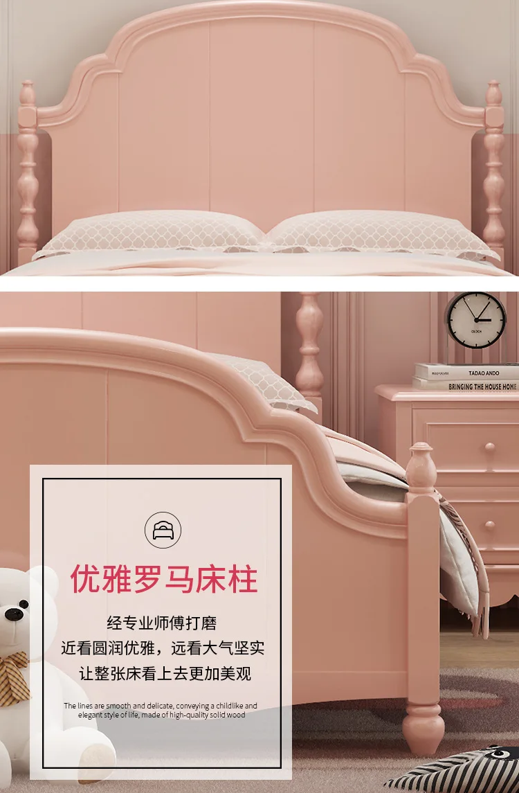 Children's furniture pink children's bed girl dream solid wood single children's room bedroom little girl girl princess bed