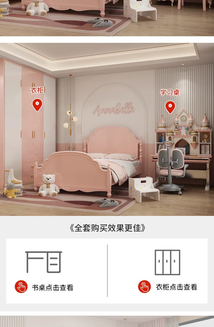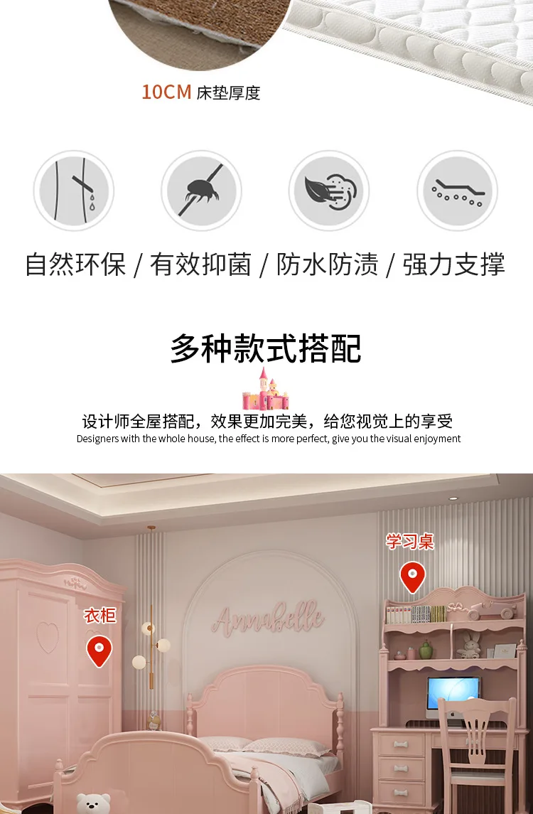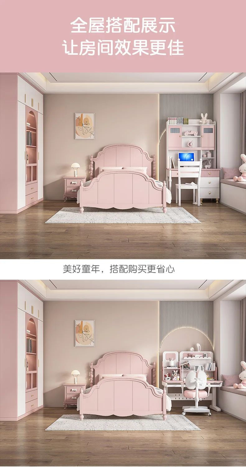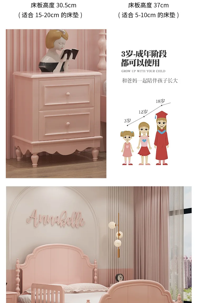 Children's furniture pink children's bed girl dream solid wood single children's room bedroom little girl girl princess bed