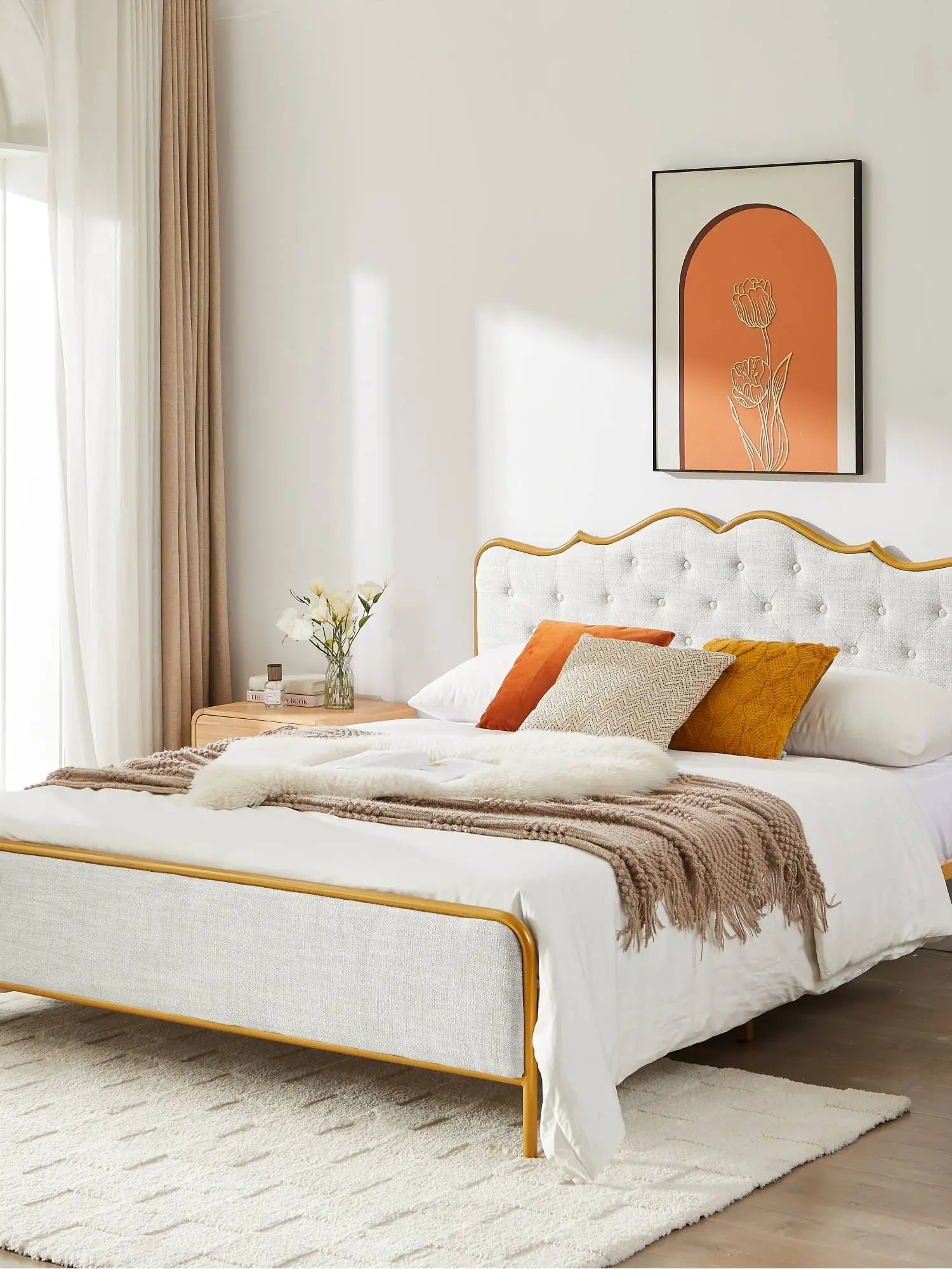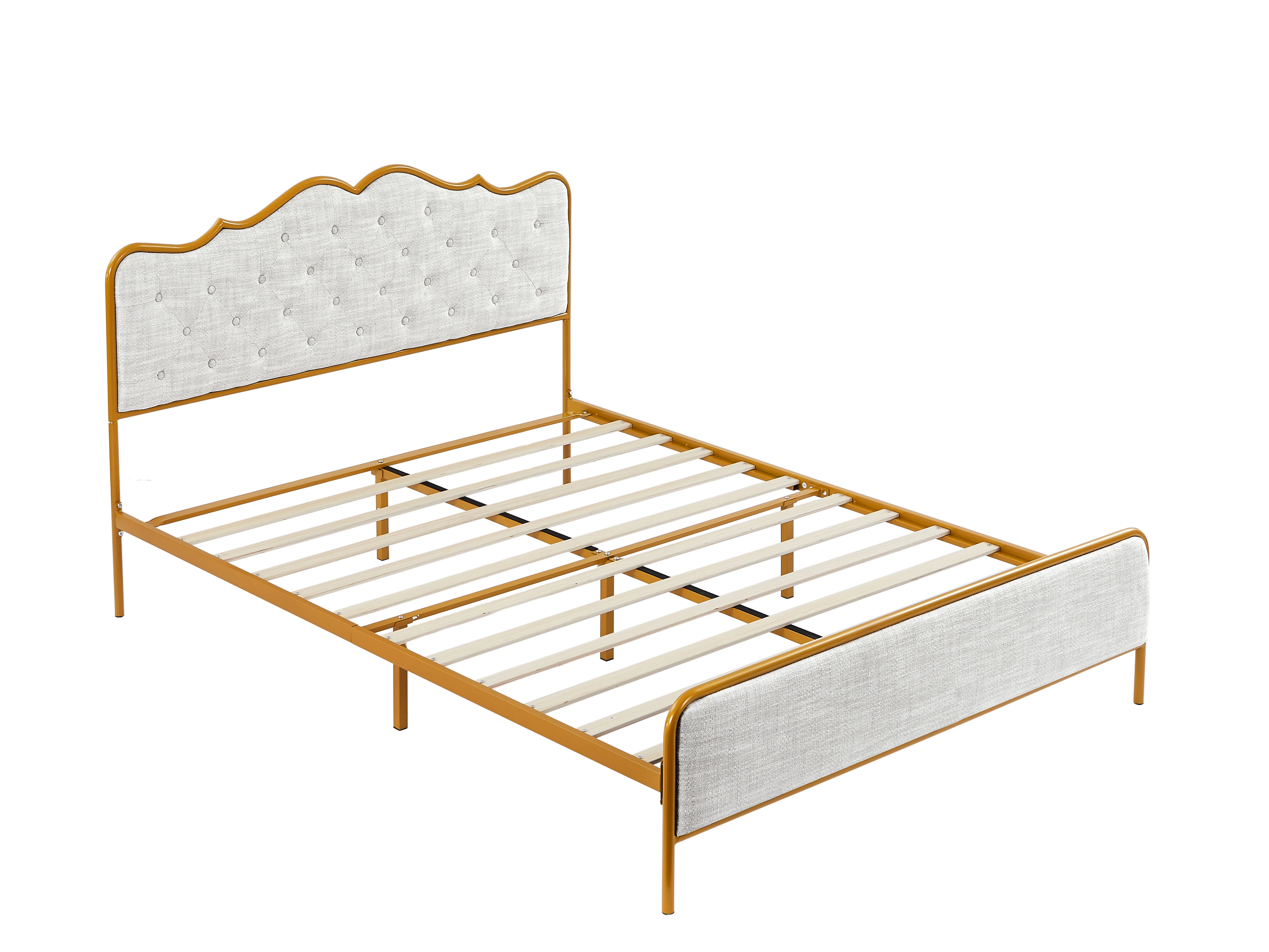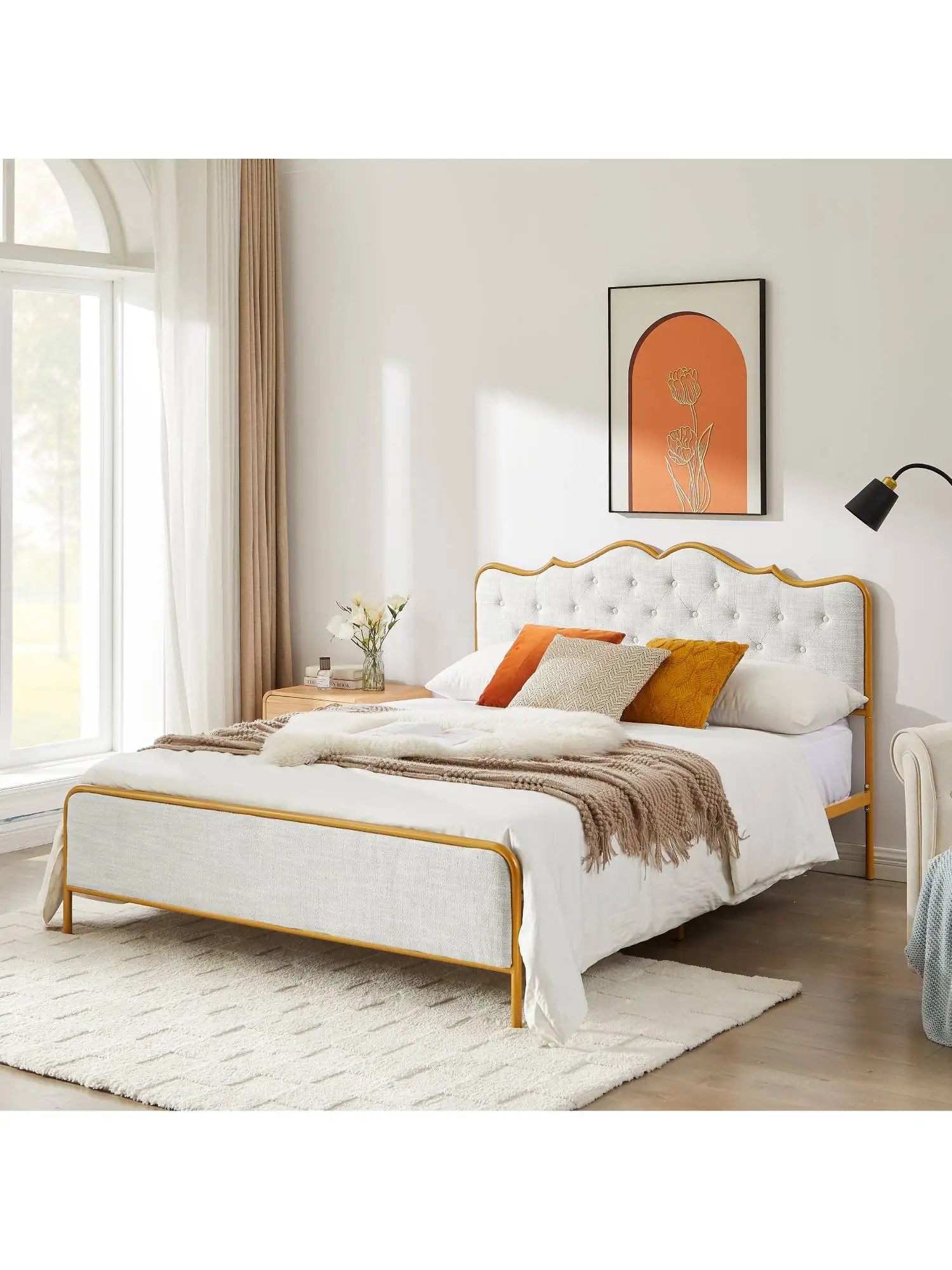 Classic Buckle shaped backrest, metal frame, solid wood ribs, sponge soft bag, comfortable and elegant atmosphere, light gray, Full-size, F sleeping bed |