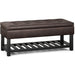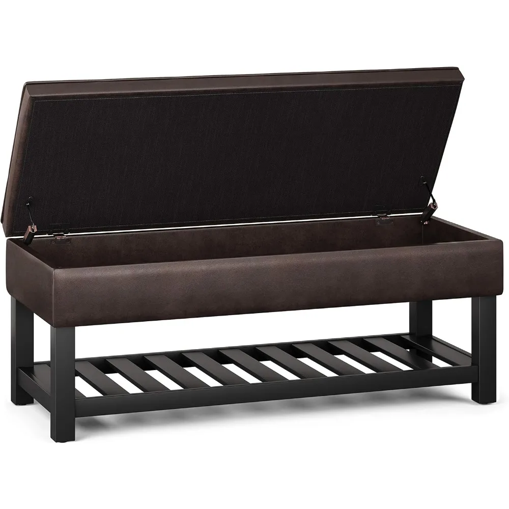Entryway Footstool, Open Bottom in Distressed Brown Faux Leather, 44 Inch Wide Rectangle Storage Ottoman Bench