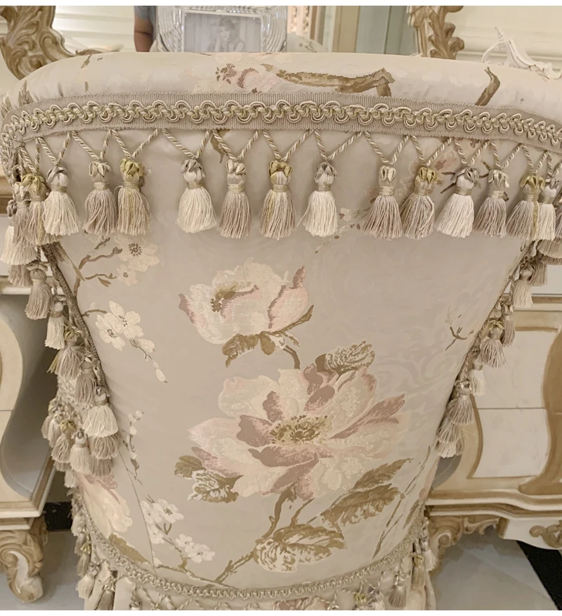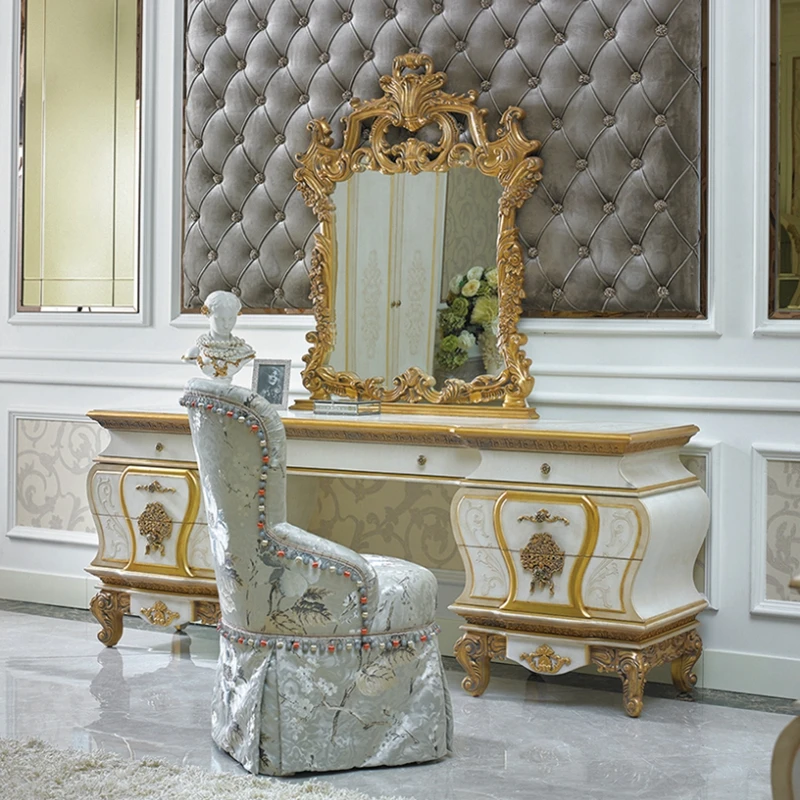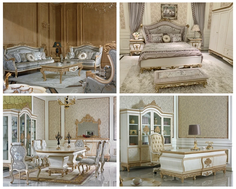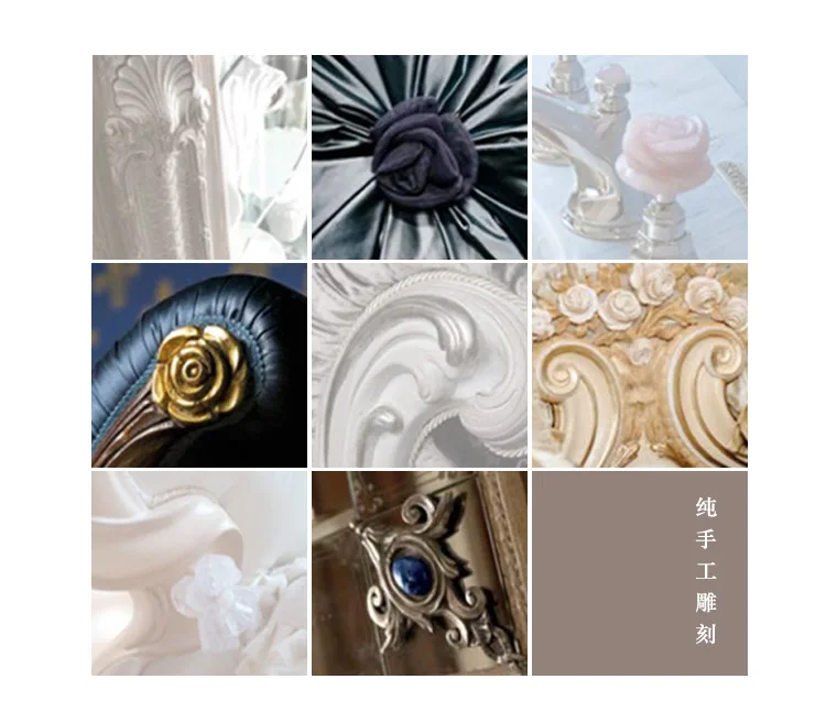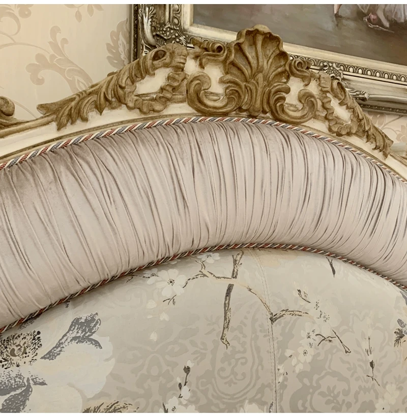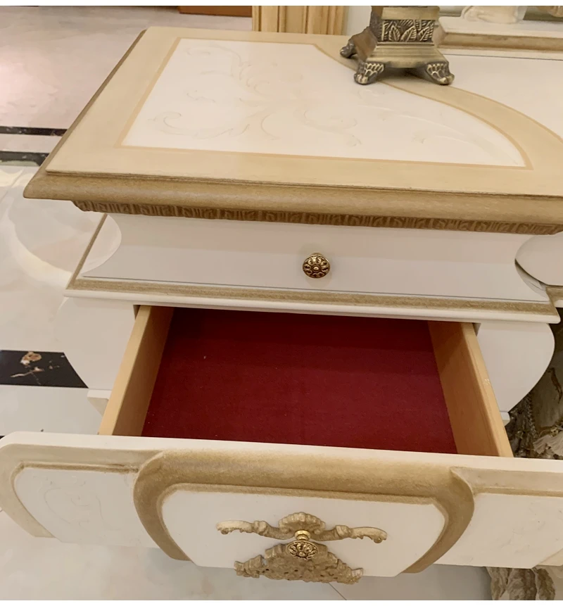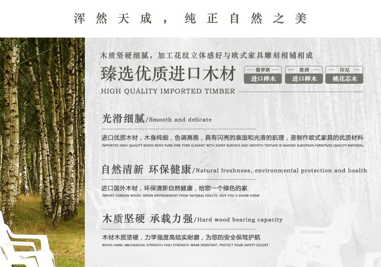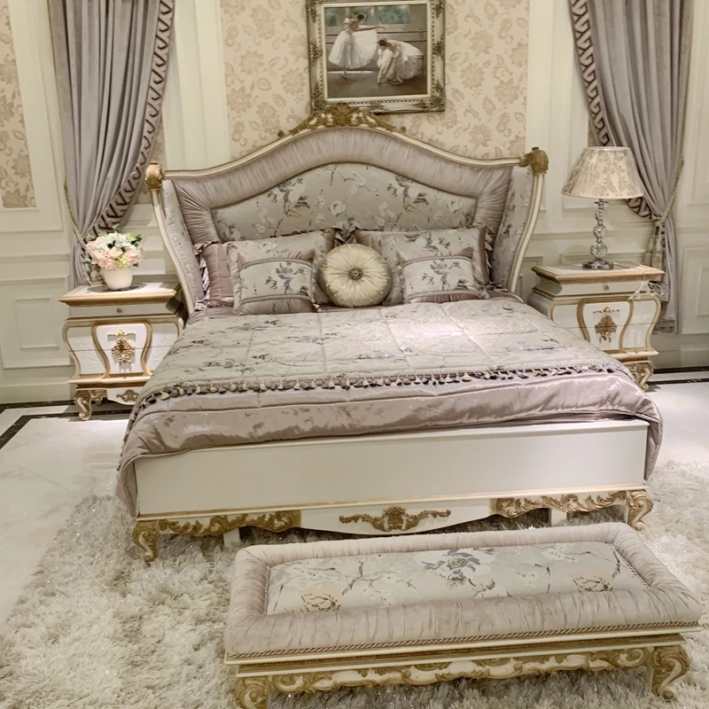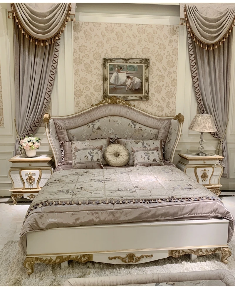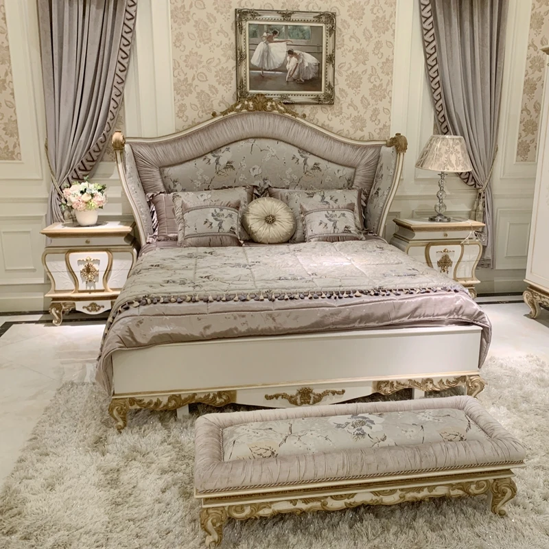 European-style Luxury Heavy Industry Carved Beech Wood Master Bedroom Double Bed White Light Purple