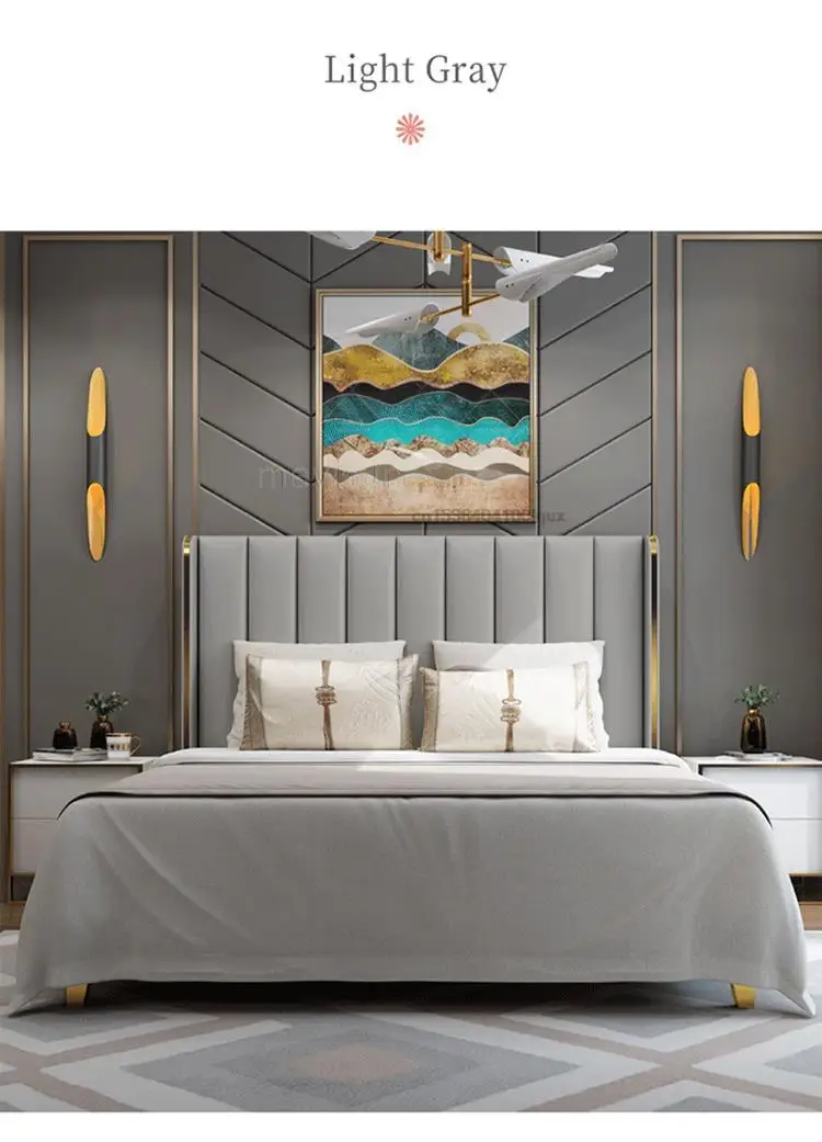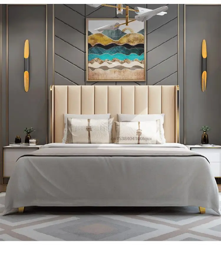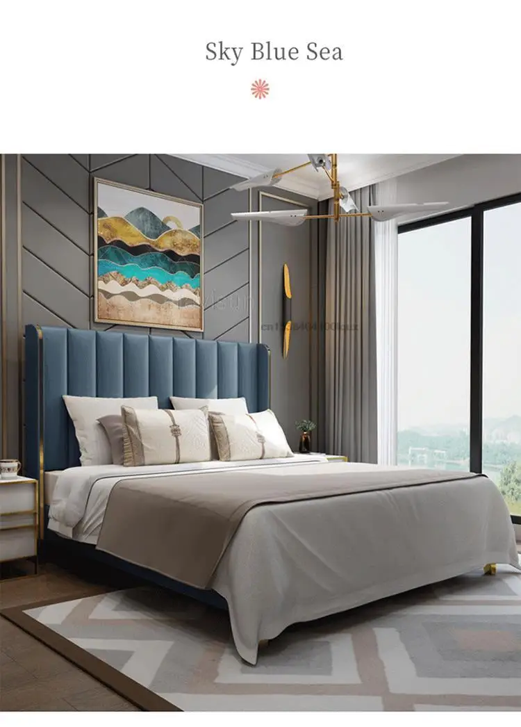 European Style Wood King Size And Queen Size Bed For Bedroom Furniture Comfortable Upholstered High Quality Double Bed Set