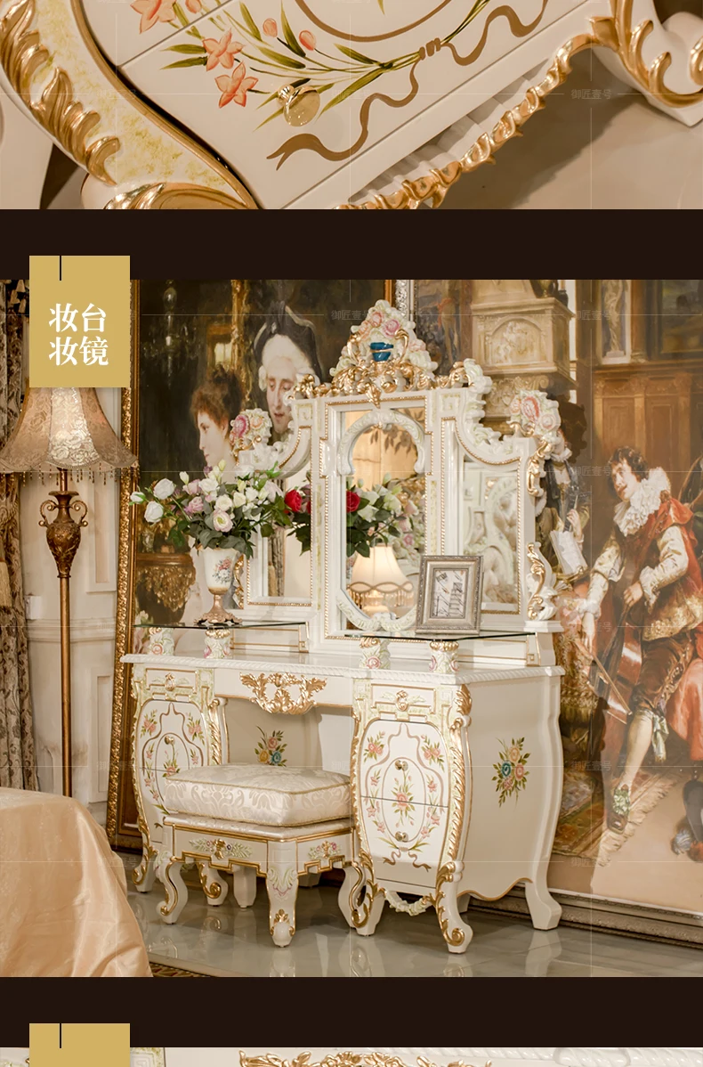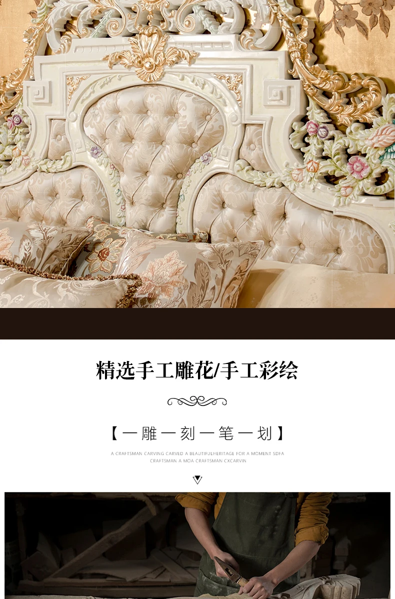 Fancy Luxury Bed Frames Queen Aesthetic White French Modern King Size Bed Double Wood Camas De Casal Bedroom Set Furniture