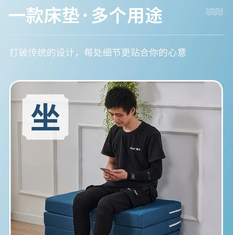 Four-fold thickened sponge mattress tatami lunch break student office single sleep removable and washable floor artifact