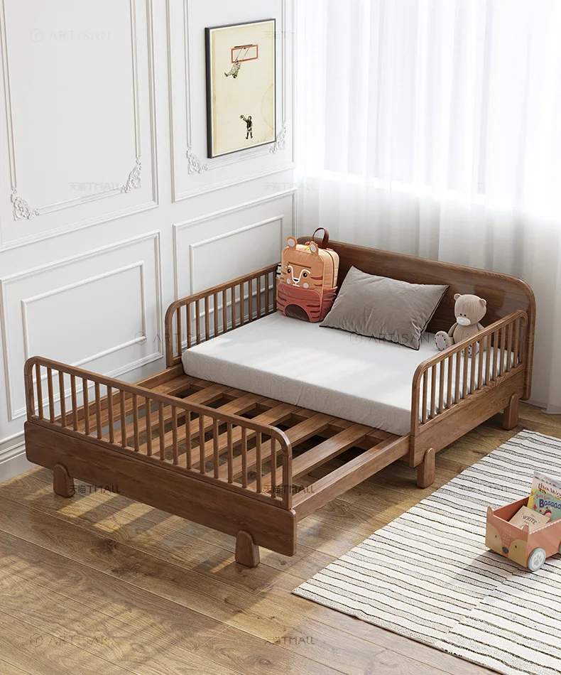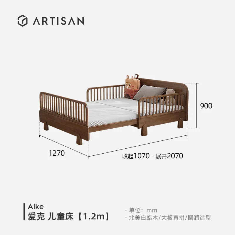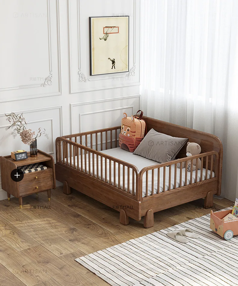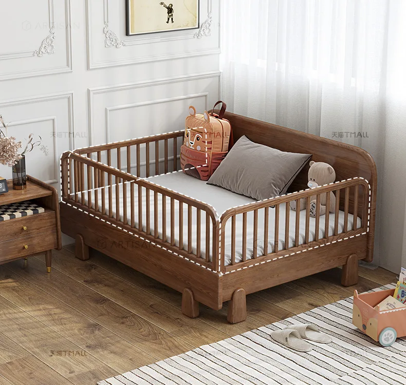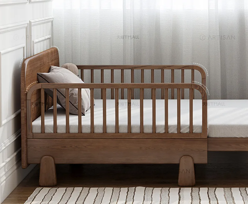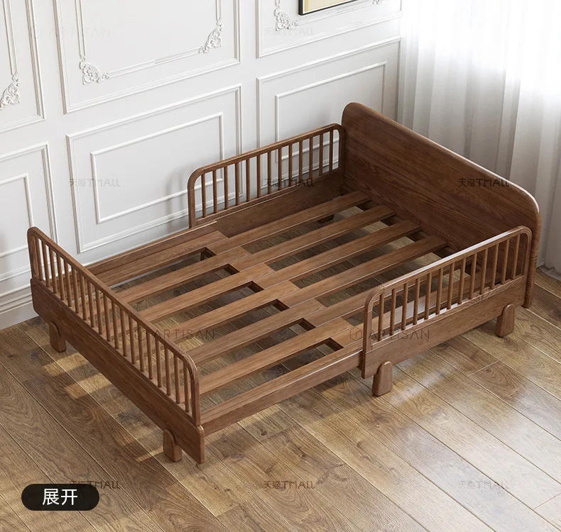 Home furniture Children's Furniture Children's Beds Solid wood kids bed with guardrail foldable baby bed baby crib 80/120*200cm