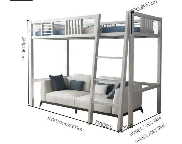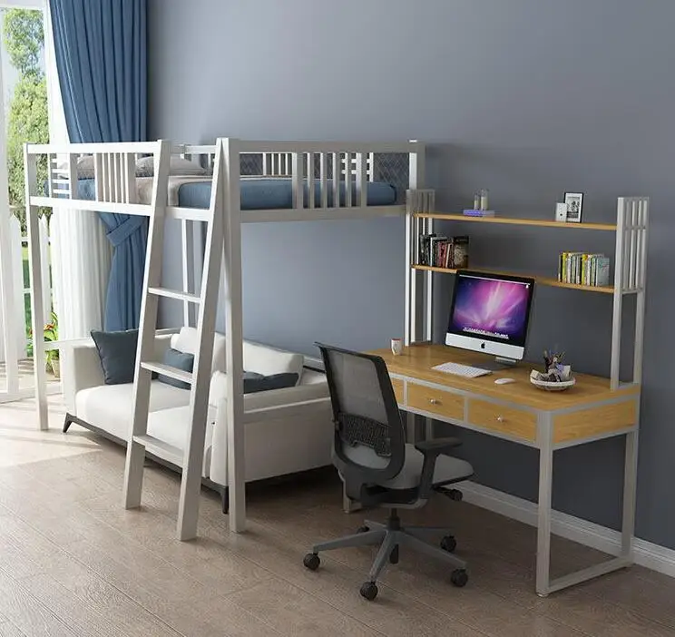 Iron bed under the table elevated bed small family space saving pavilion bed simple modern iron bed high and low bed