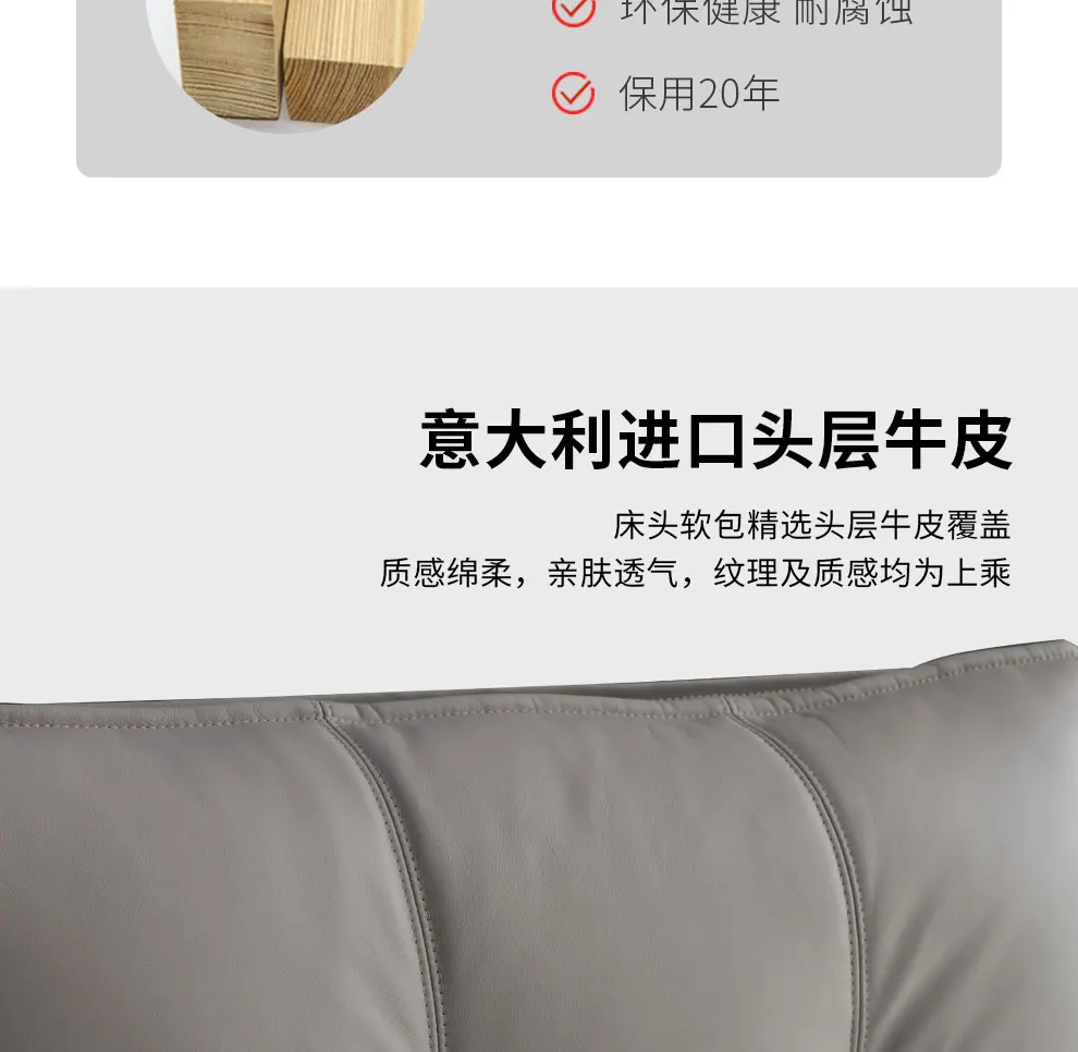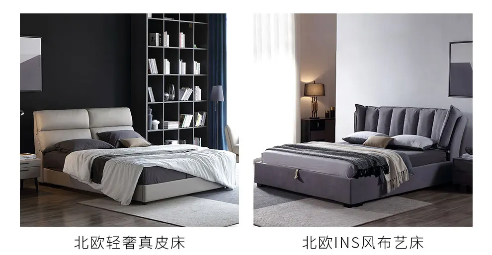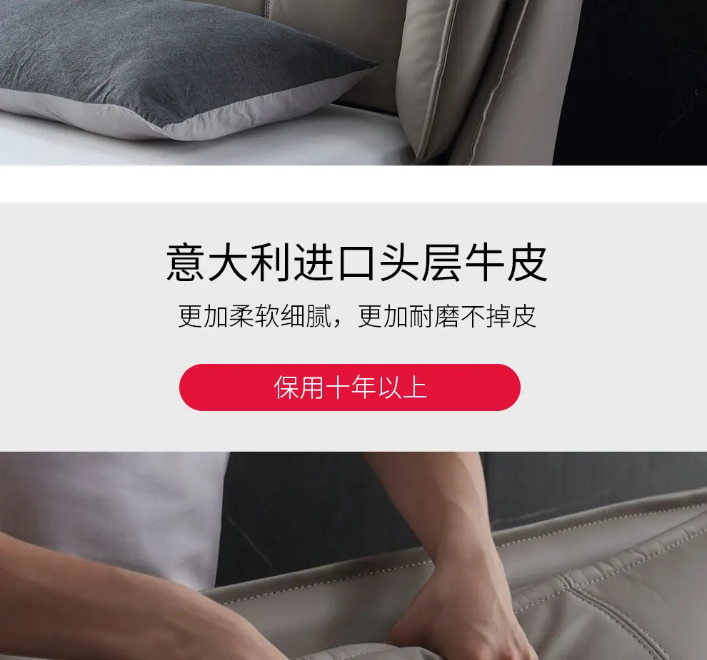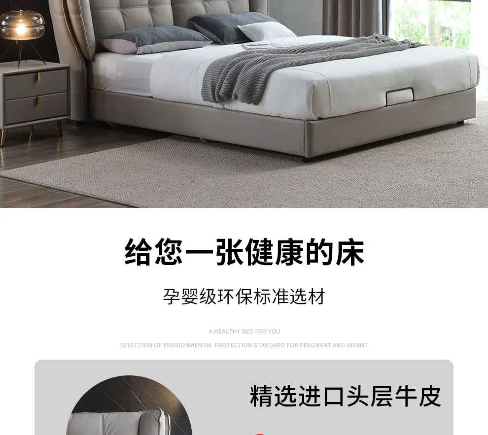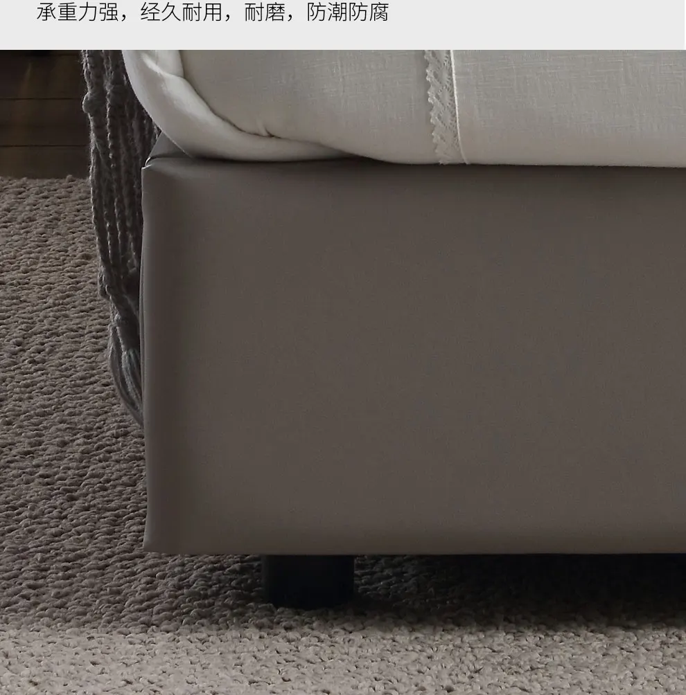 Italian style light luxury modern minimalist master bedroom leather headboard cowhide leather bed Nordic double bed
