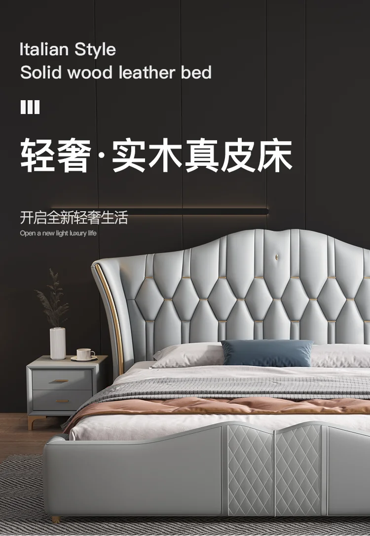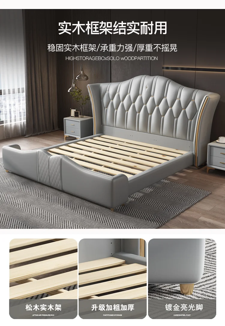 Leather Light Luxury Master Bedroom 1.8 M Wedding Bed Modern Simple Double Bed High-end Storage 1.5 M High Box Soft Bed