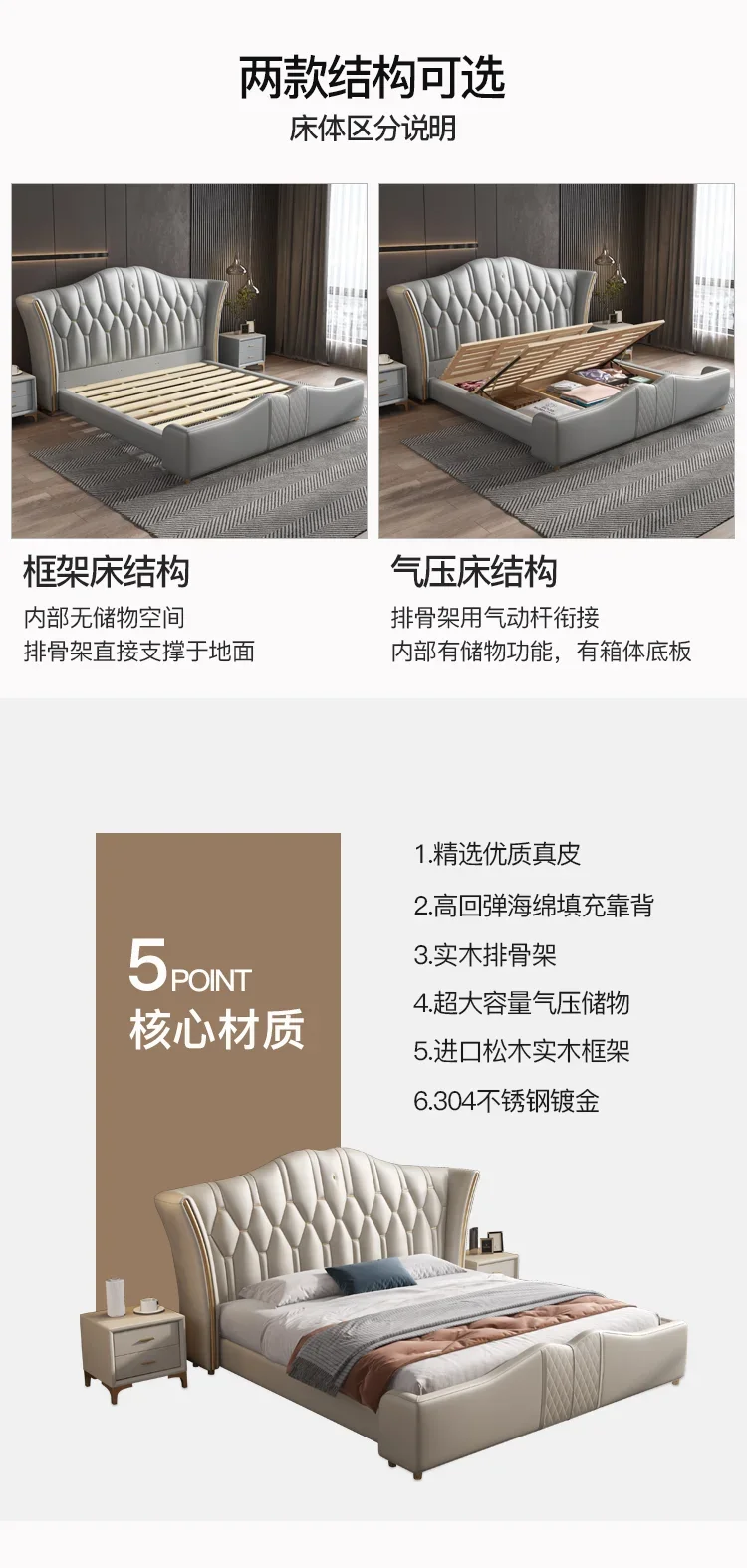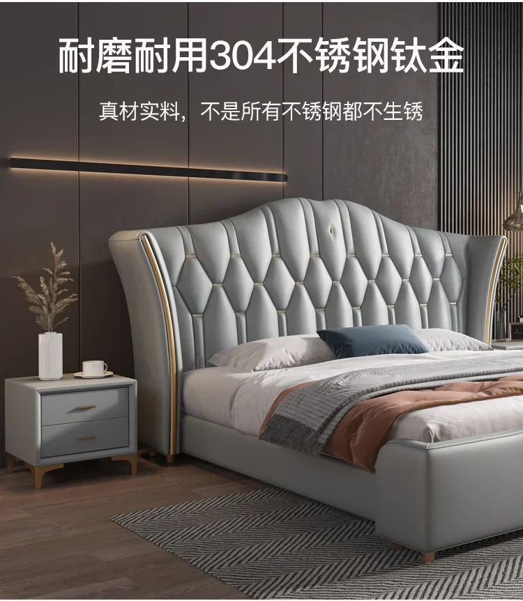 Leather Light Luxury Master Bedroom 1.8 M Wedding Bed Modern Simple Double Bed High-end Storage 1.5 M High Box Soft Bed