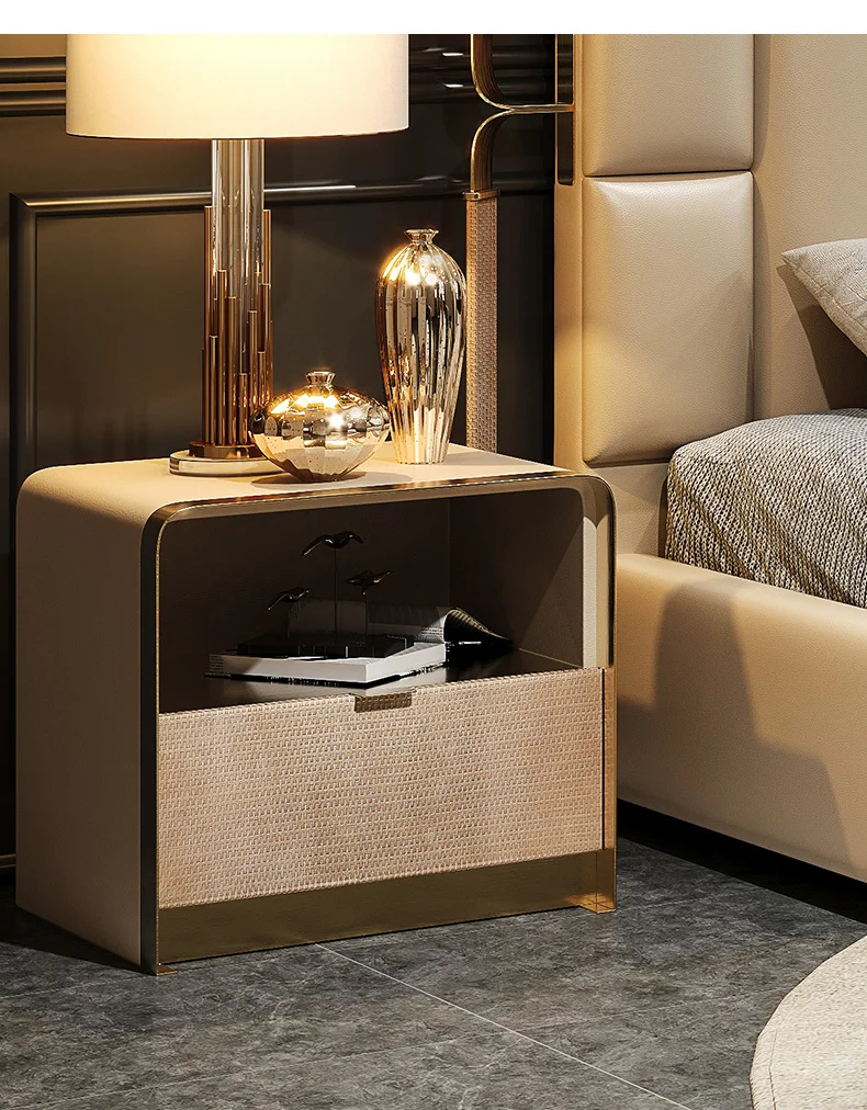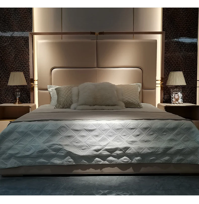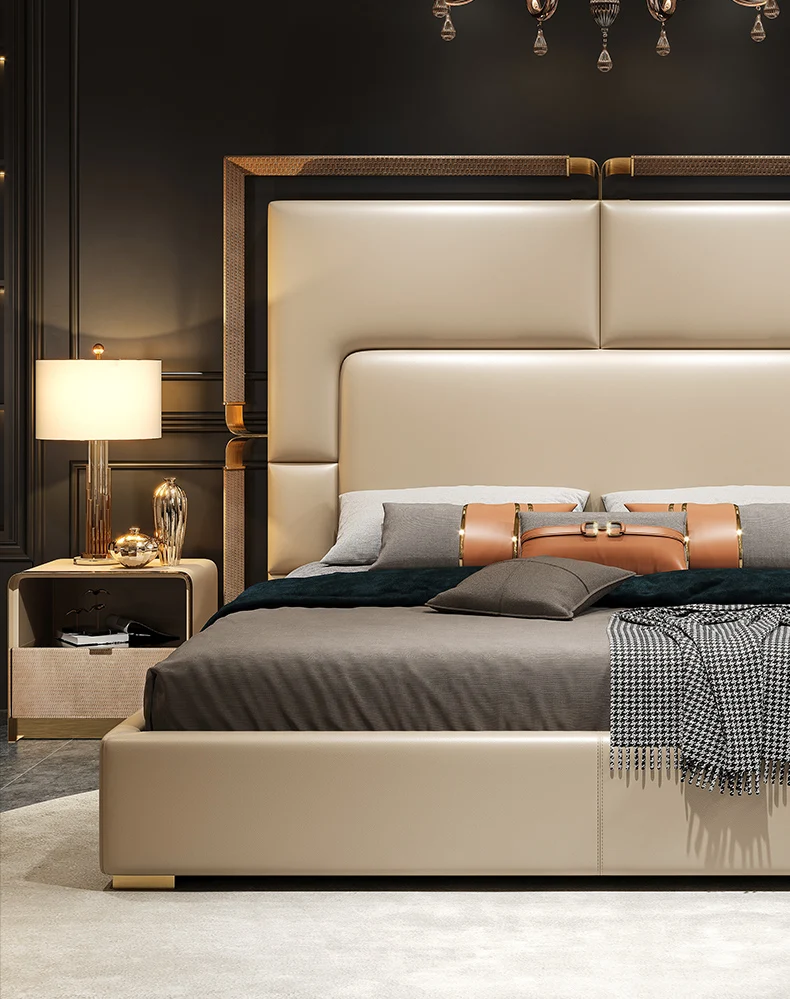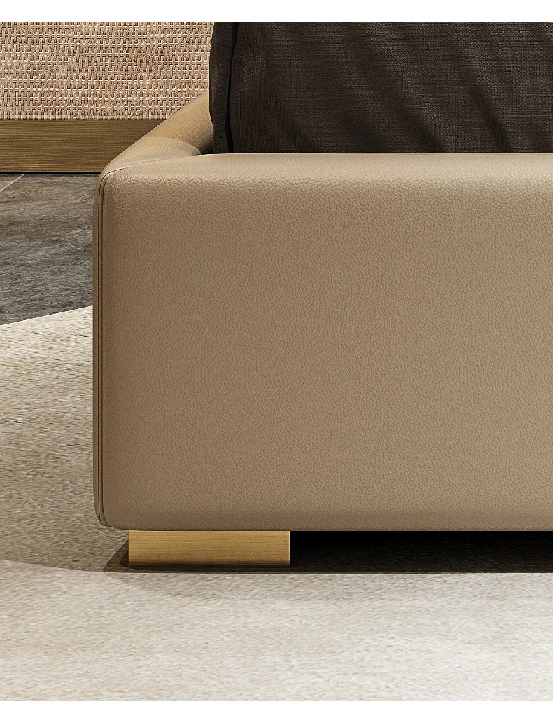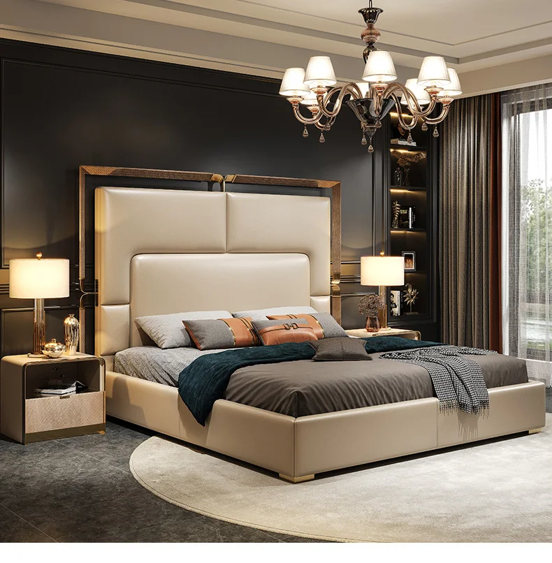Light Luxury Leather Bed Master Bedroom Modern Simple 1.5M / 1.8M Double Bed High-End Villa Napa Head Layer Leather Wedding Bed