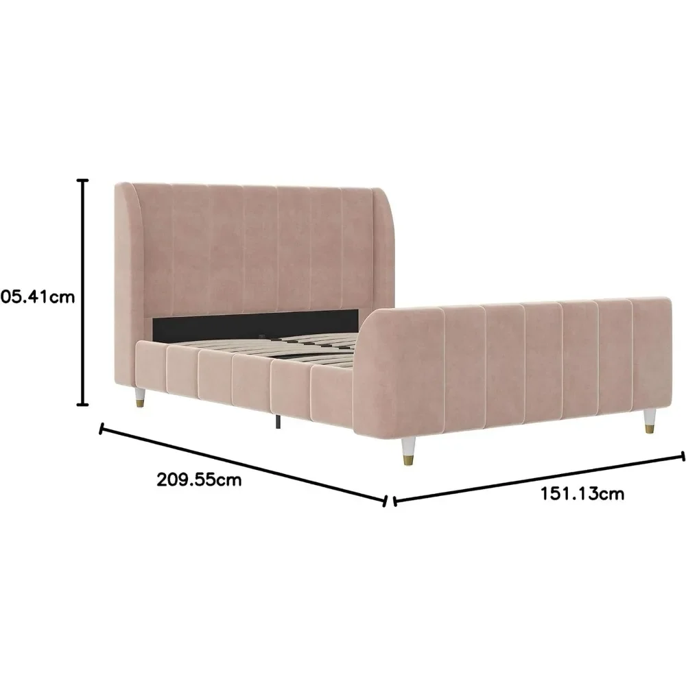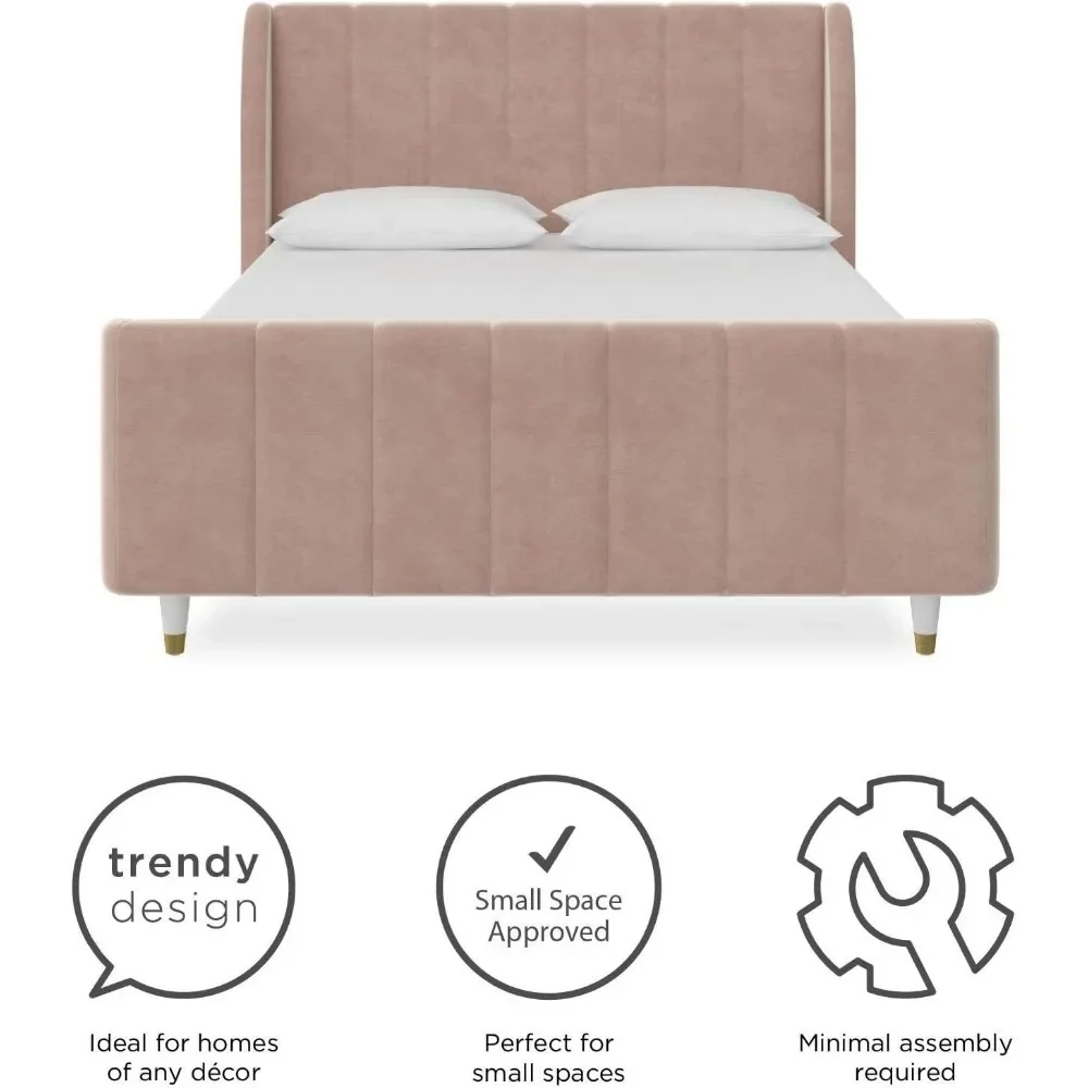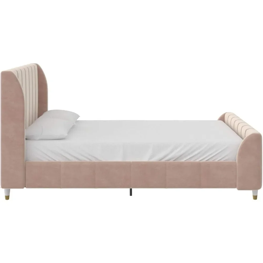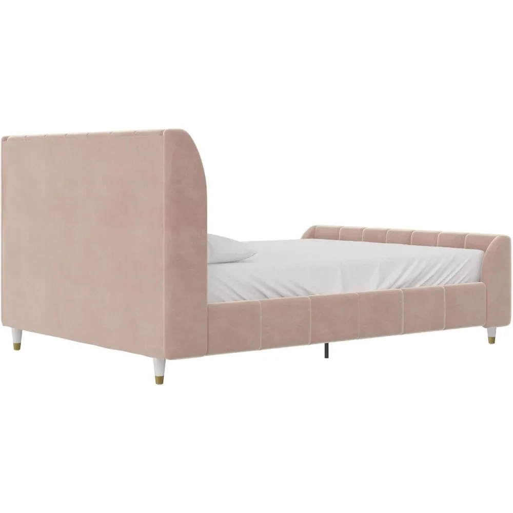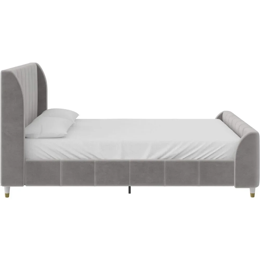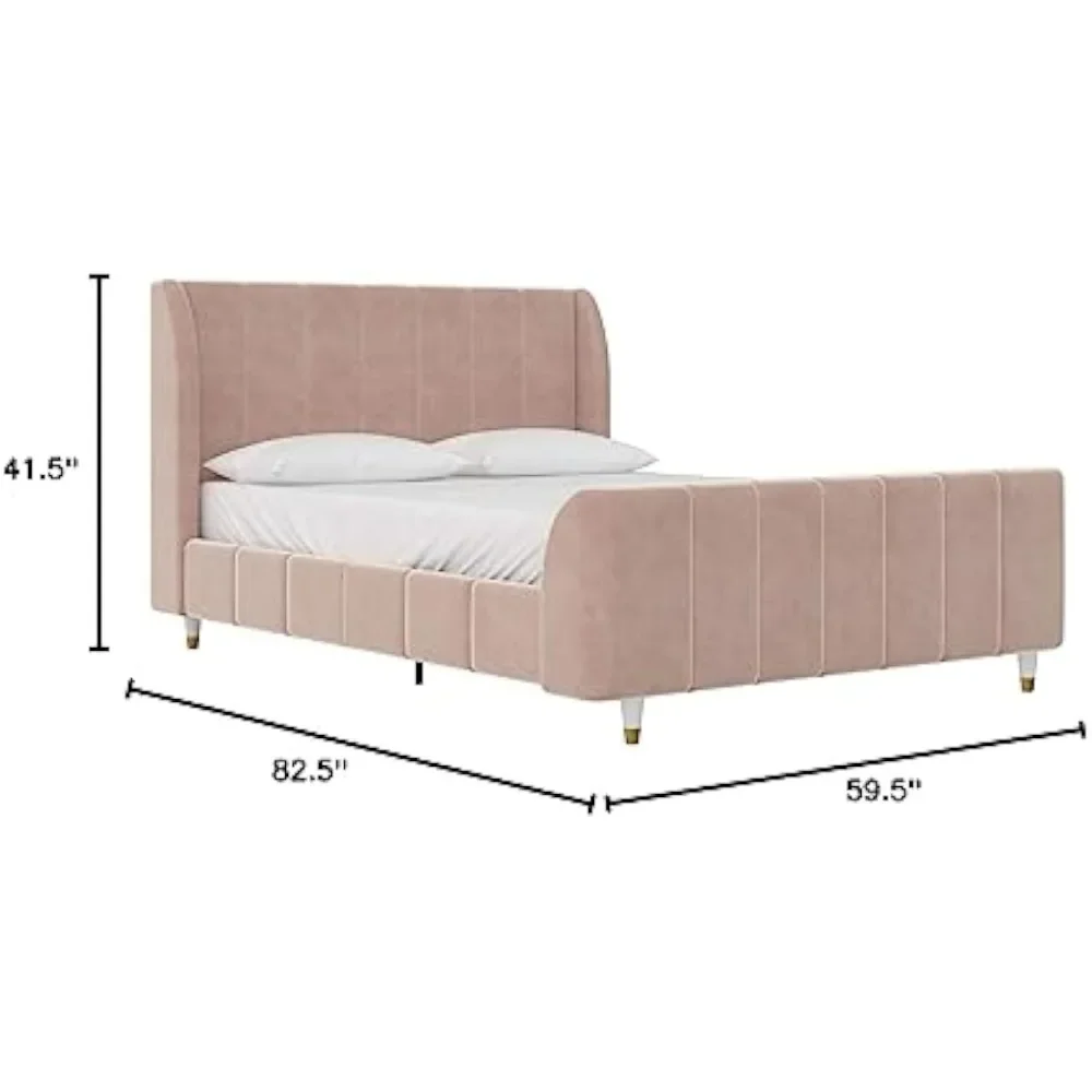 - Designed with soft velvet upholstery and white/gold dipped metal legs..Sturdy construction with metal side rails, additional center legs and a bentwood slats system. No additional box spring or foundation required.