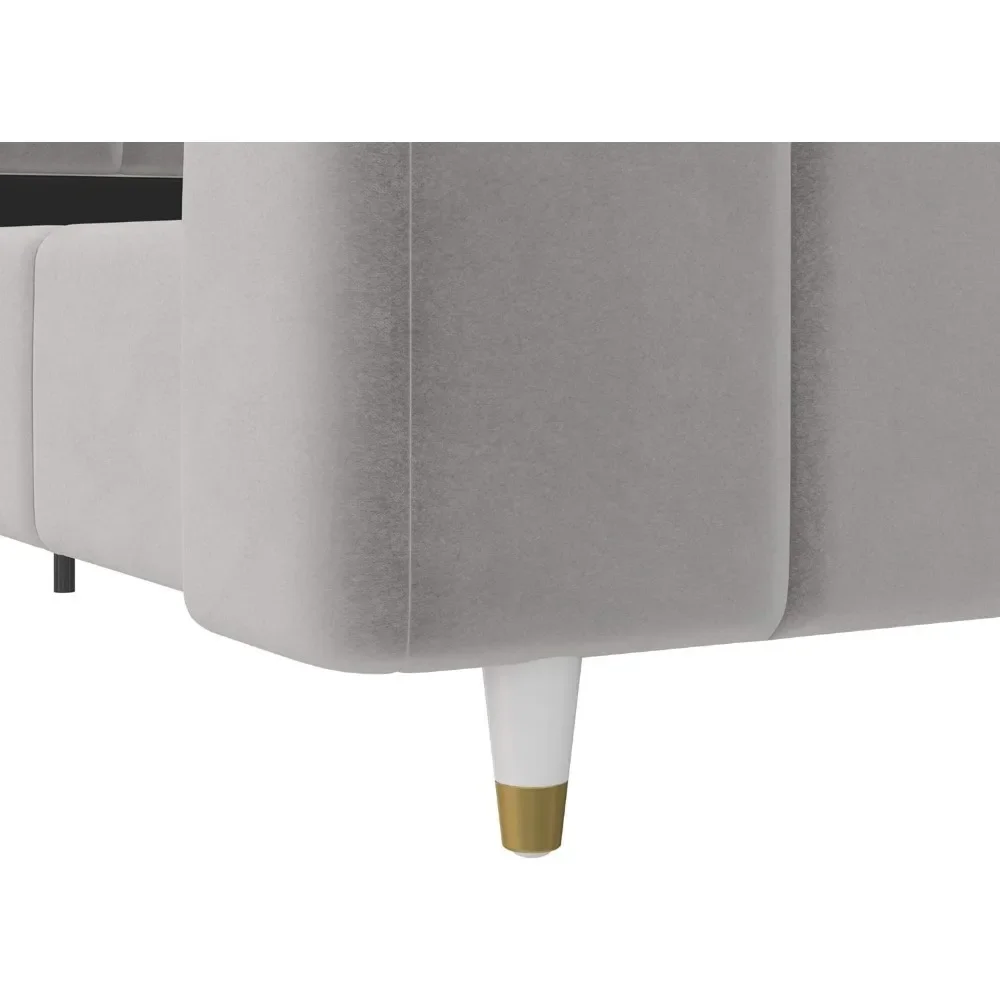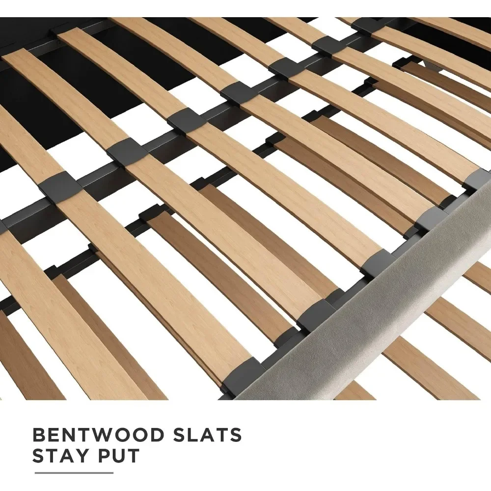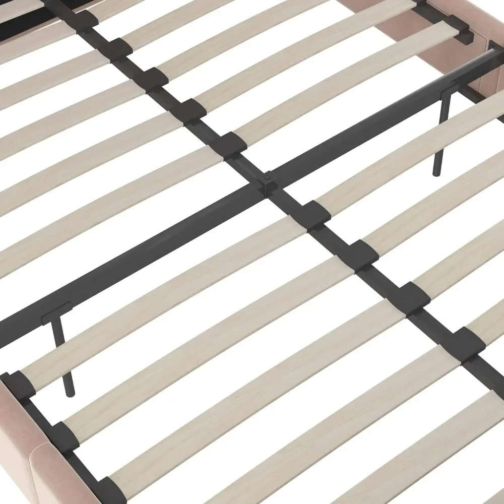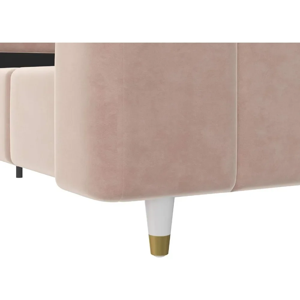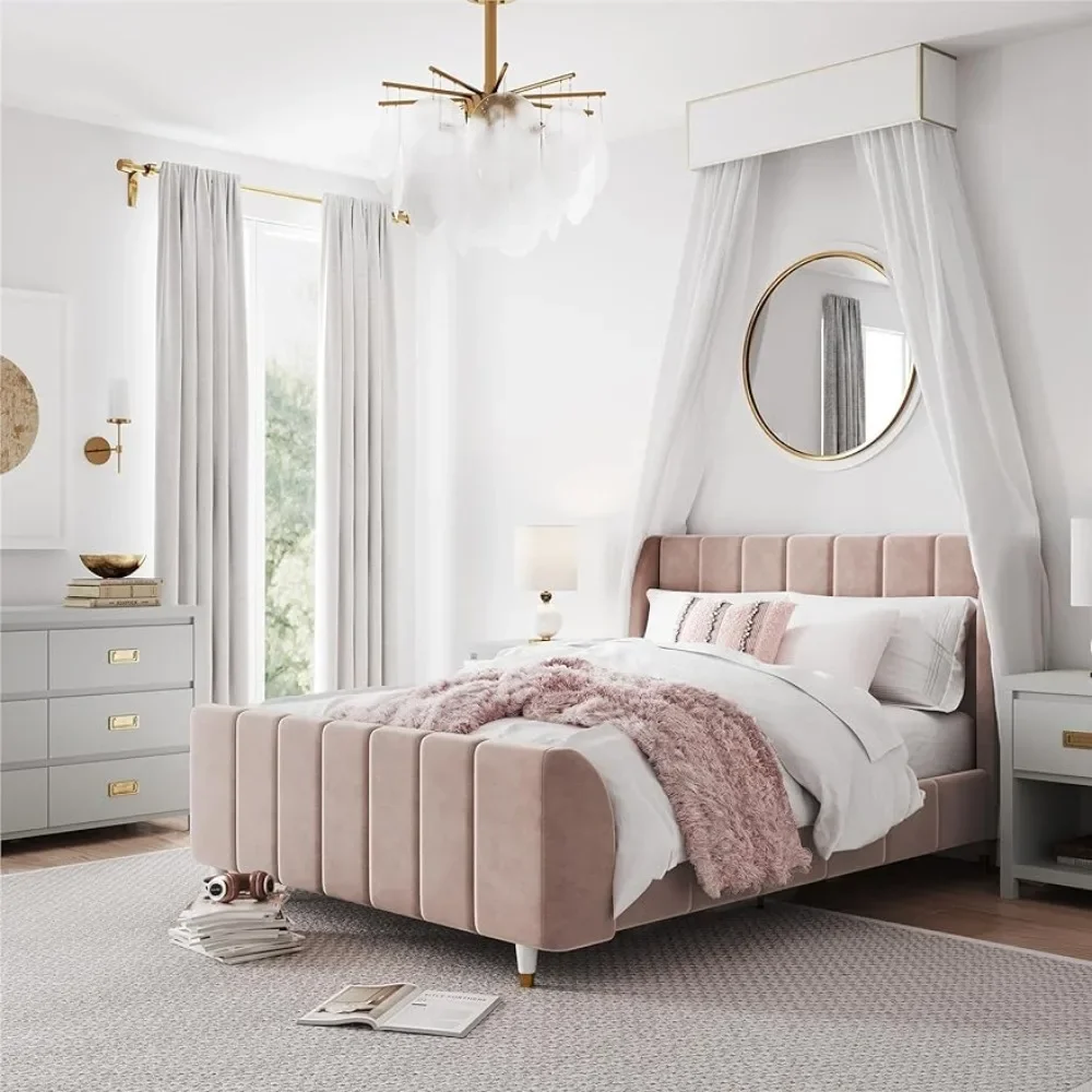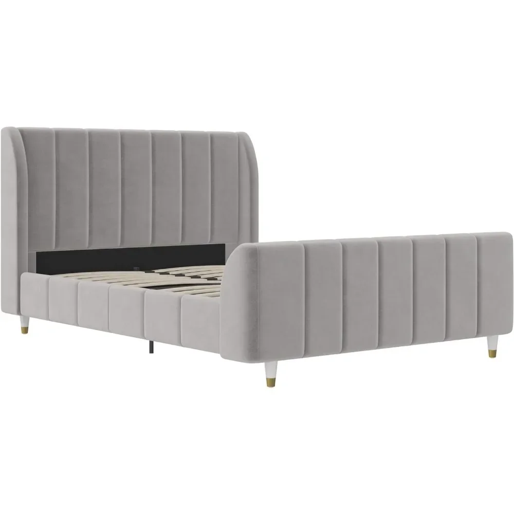 - Designed with soft velvet upholstery and white/gold dipped metal legs..Sturdy construction with metal side rails, additional center legs and a bentwood slats system. No additional box spring or foundation required.