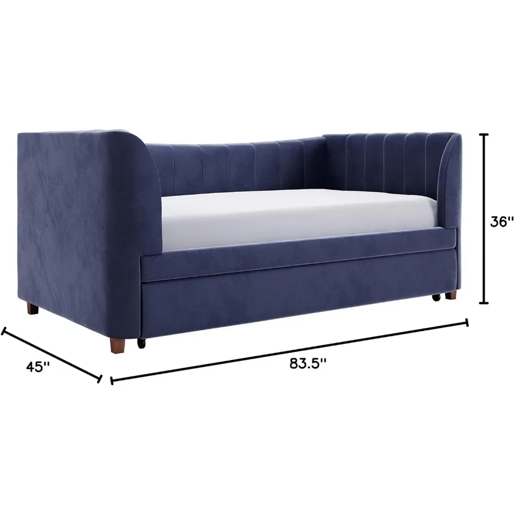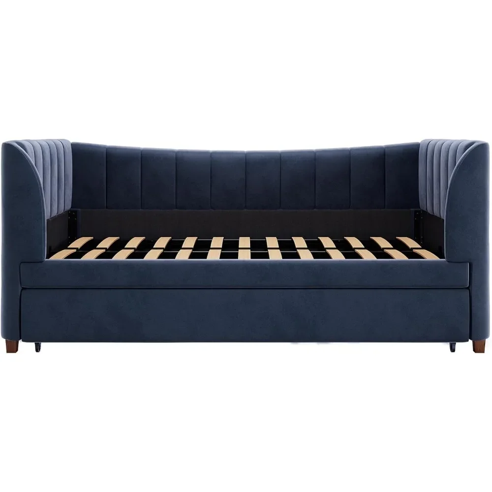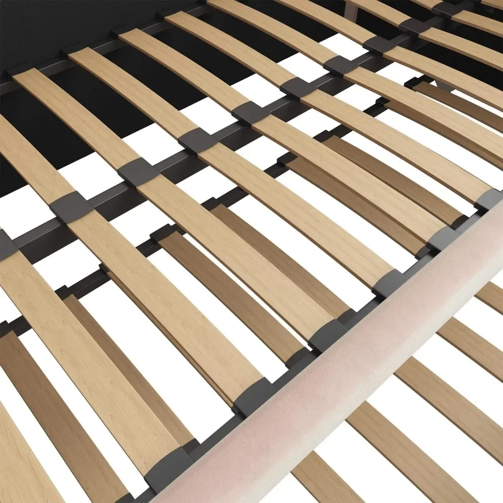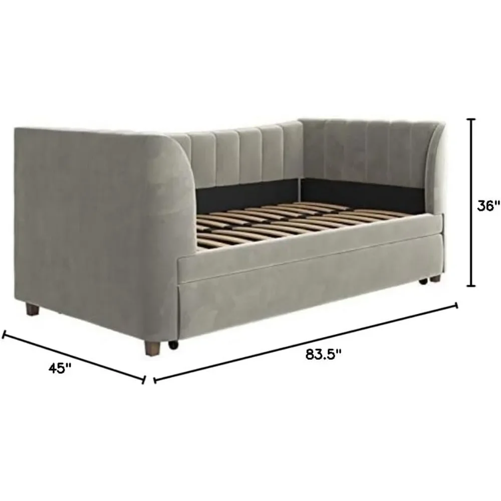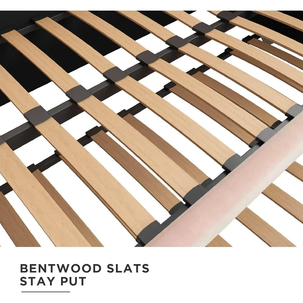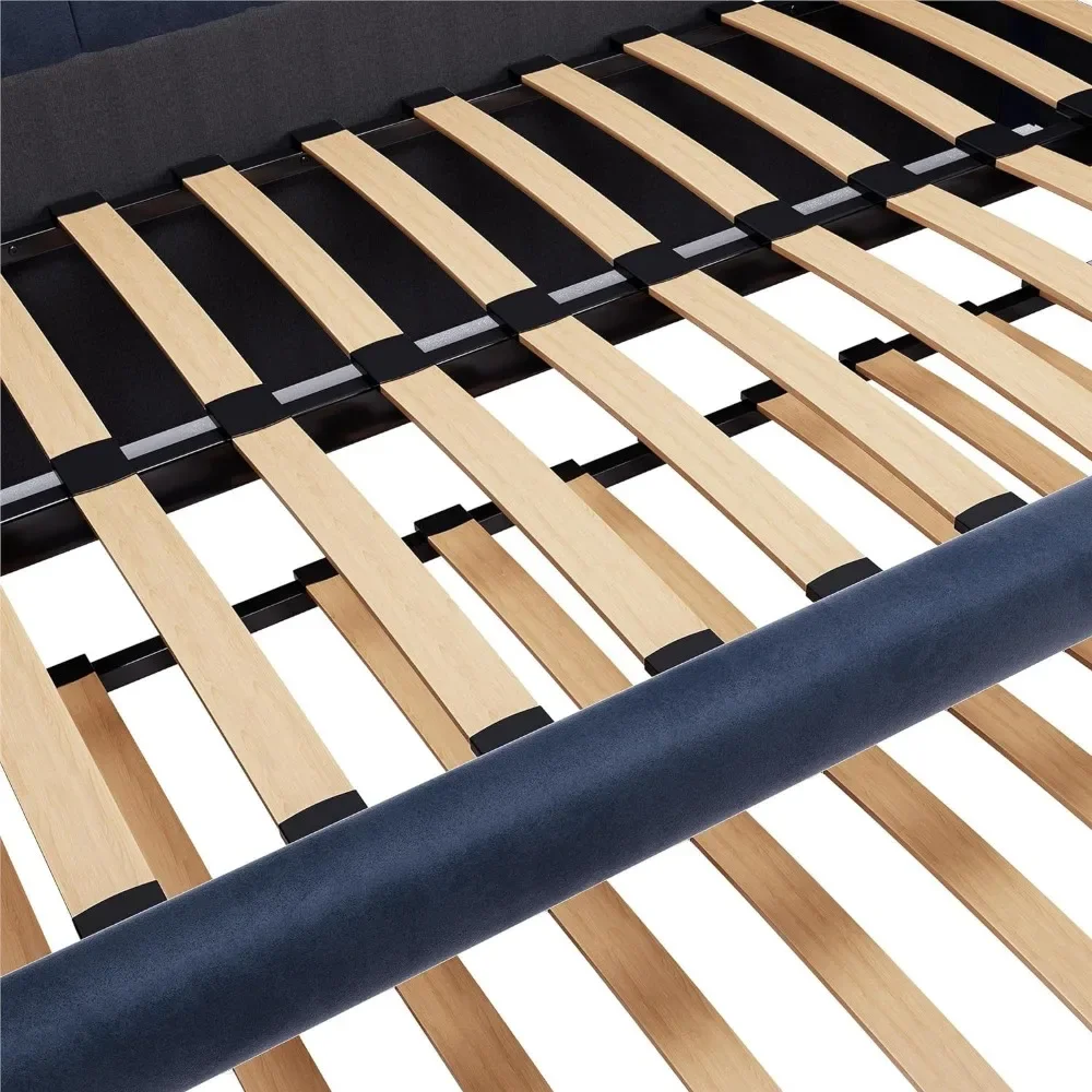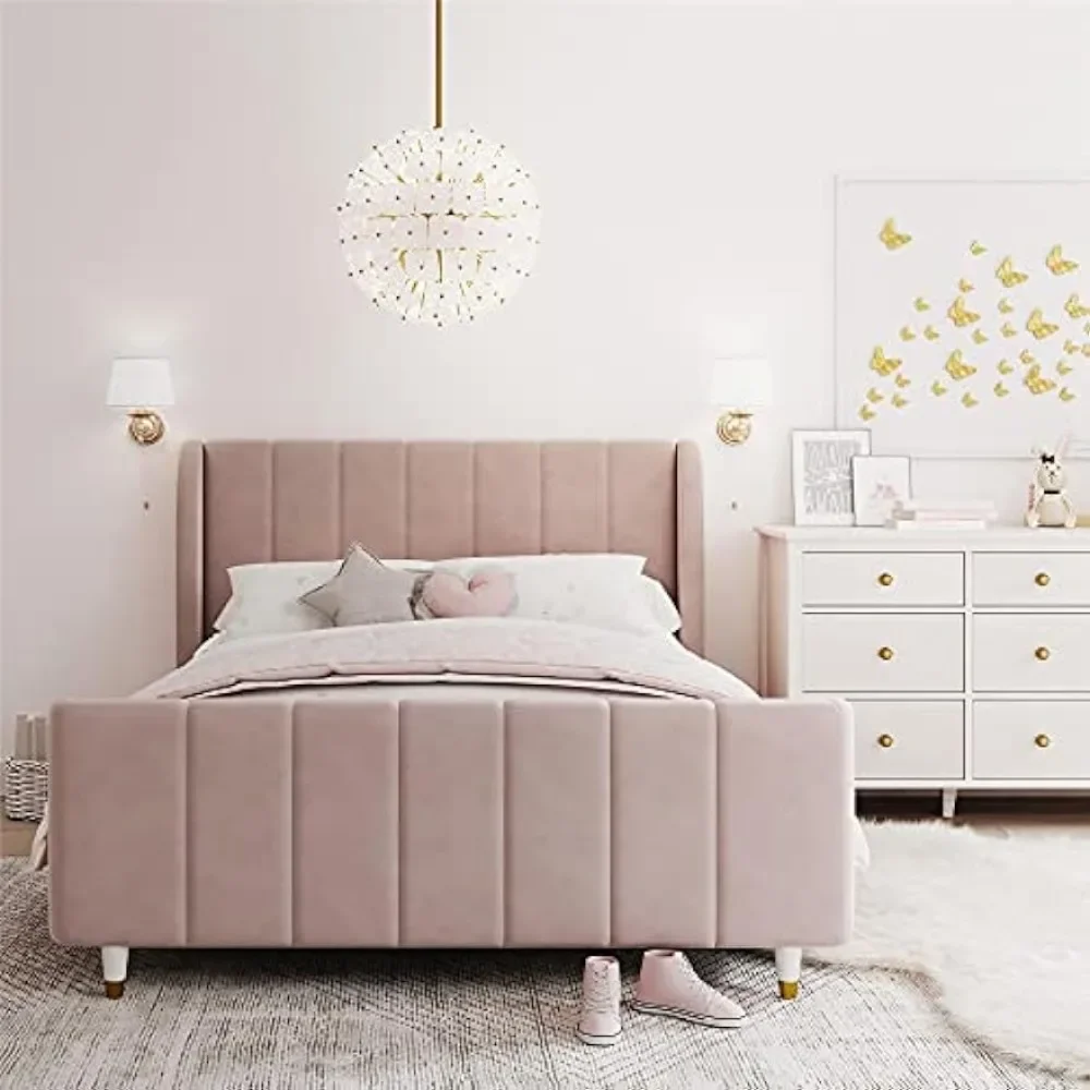 - Designed with soft velvet upholstery and white/gold dipped metal legs..Sturdy construction with metal side rails, additional center legs and a bentwood slats system. No additional box spring or foundation required.