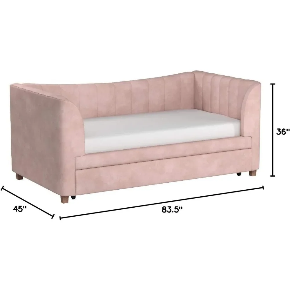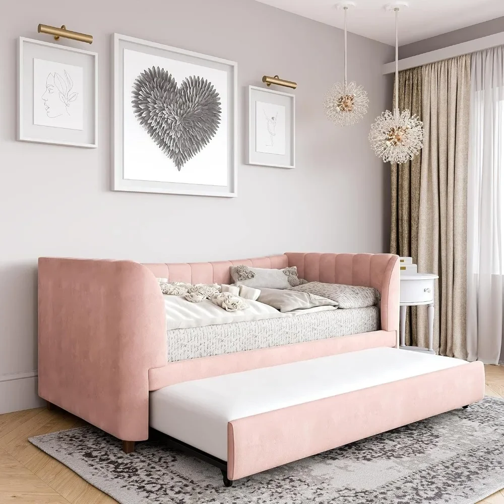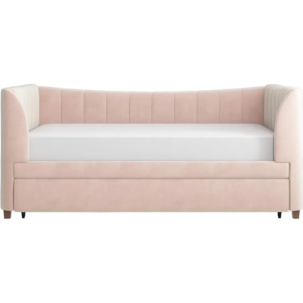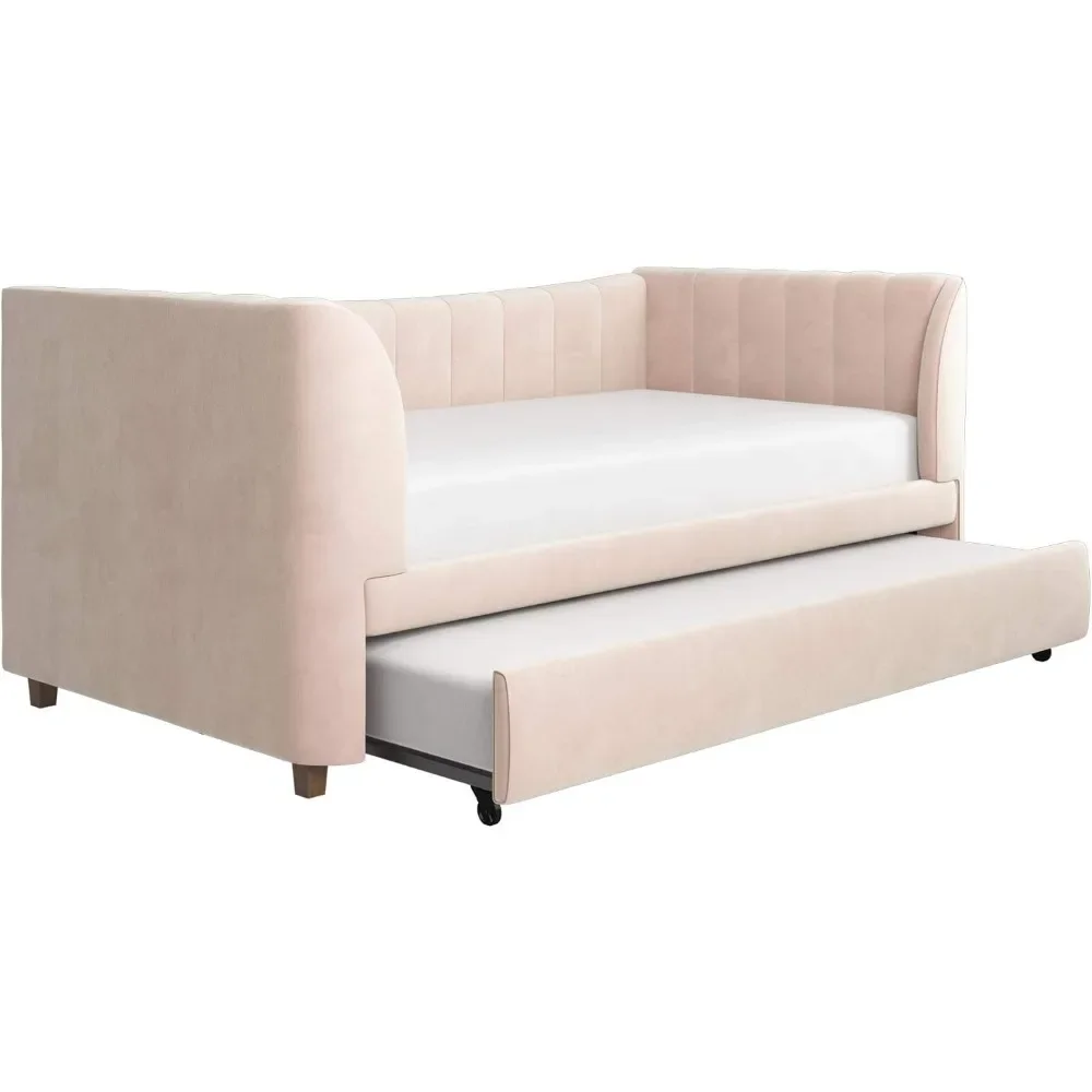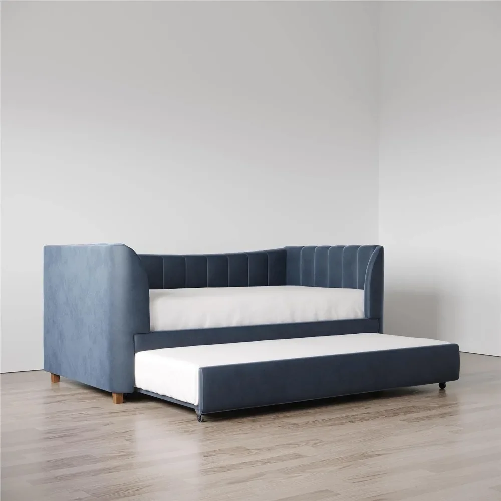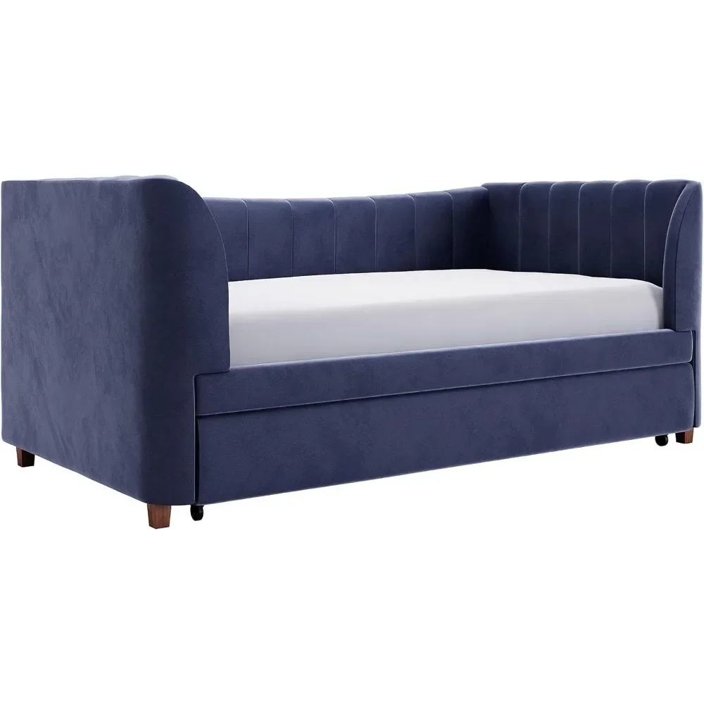 - Designed with soft velvet upholstery and white/gold dipped metal legs..Sturdy construction with metal side rails, additional center legs and a bentwood slats system. No additional box spring or foundation required.