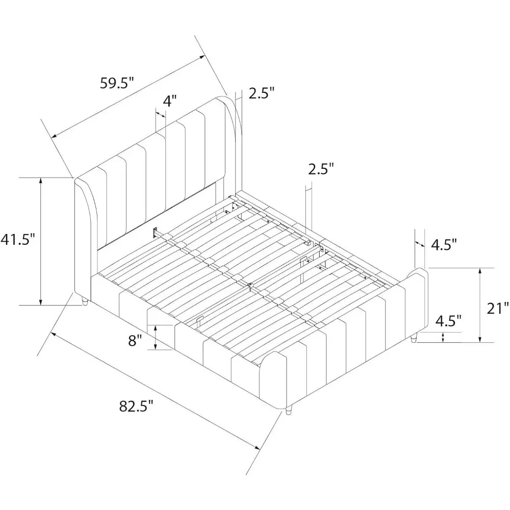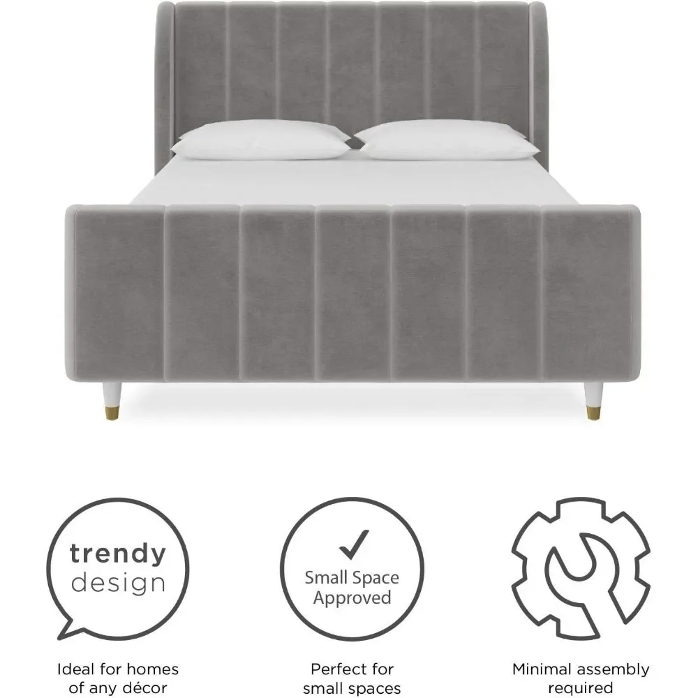 - Mid-century modern wingback design with vertical channel tufting on the headboard, footboard and side panels.