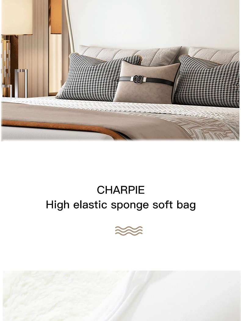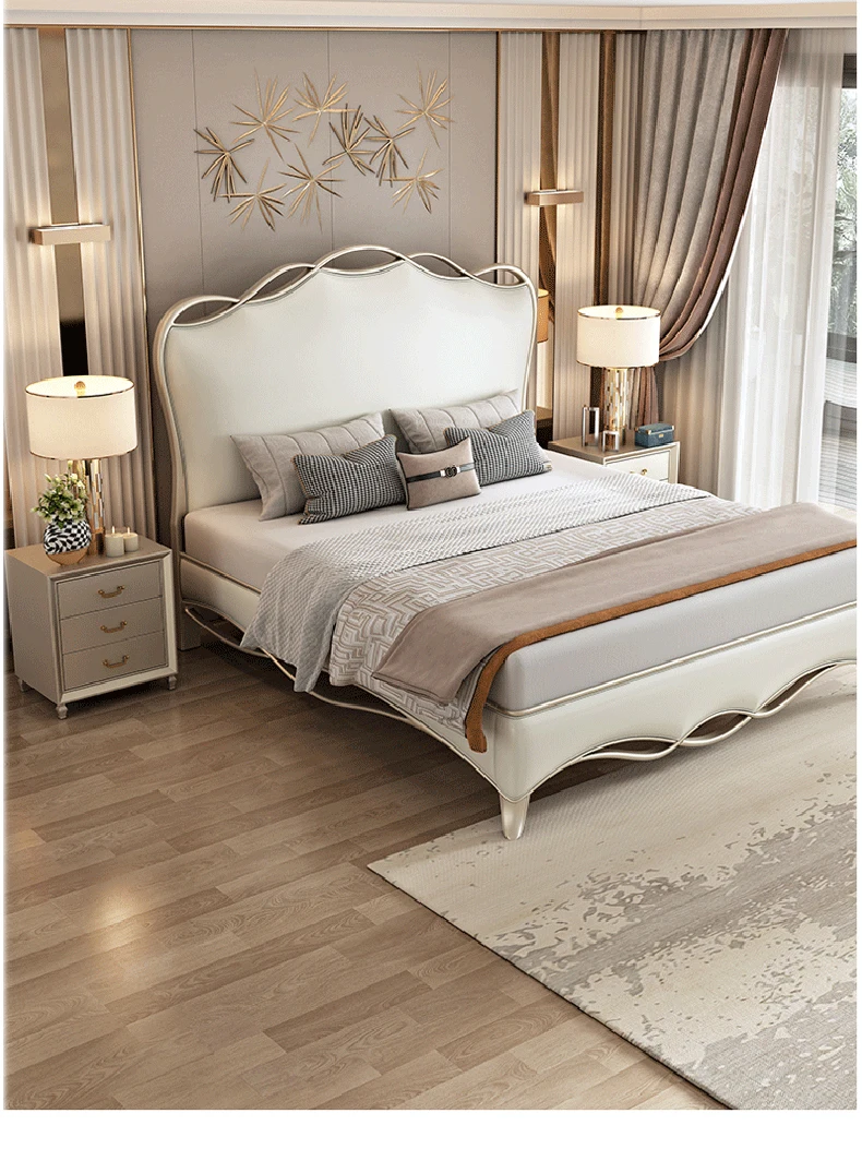 Luxury Style Bedroom Frame Set Solid Wood High Elastic Sponge Leather Bedside Table Large Storage Comfortable Double Bed Supplie