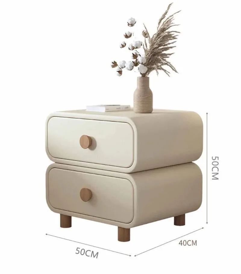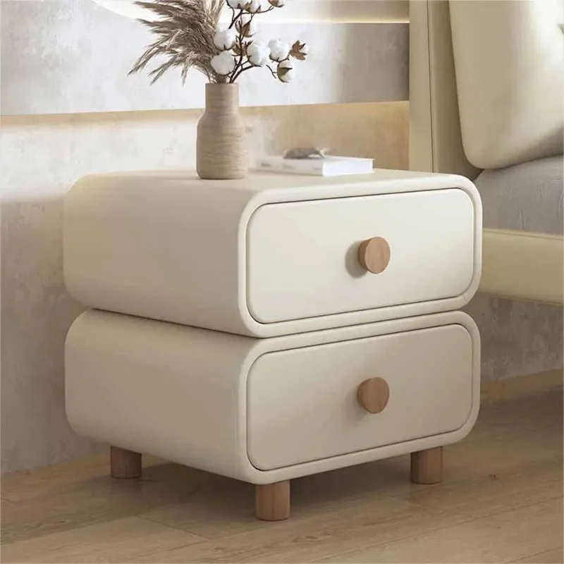 Mini Nightstands Household Bedroom Double Draw Storage Design Microfiber Leather Anti-Scratch Wear-Resistant Bedside Furniture