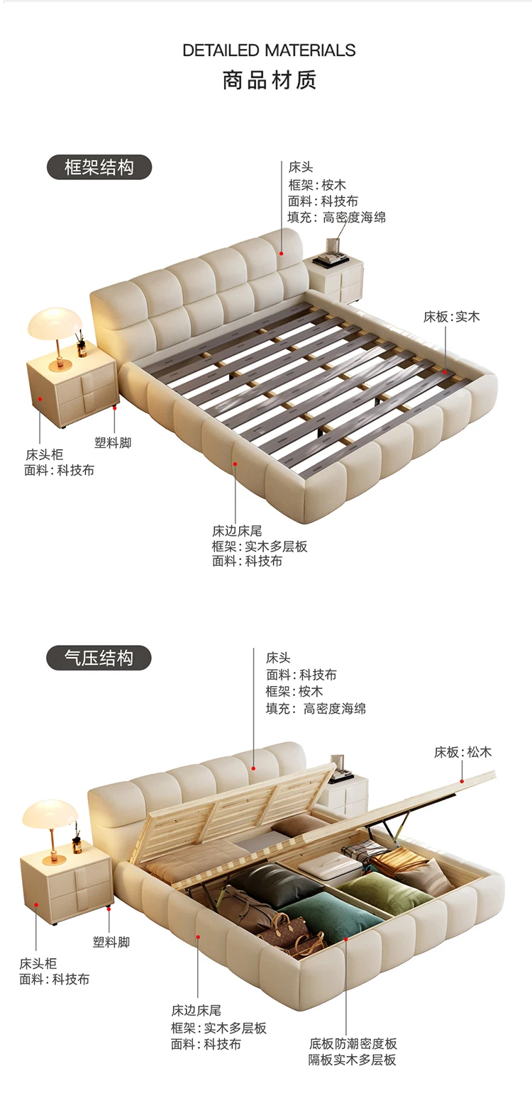Modern Floor Bed Single Wooden Multifunctional Frame Structure Platform With Nightstands Upholstered Yatak Living Room Furniture