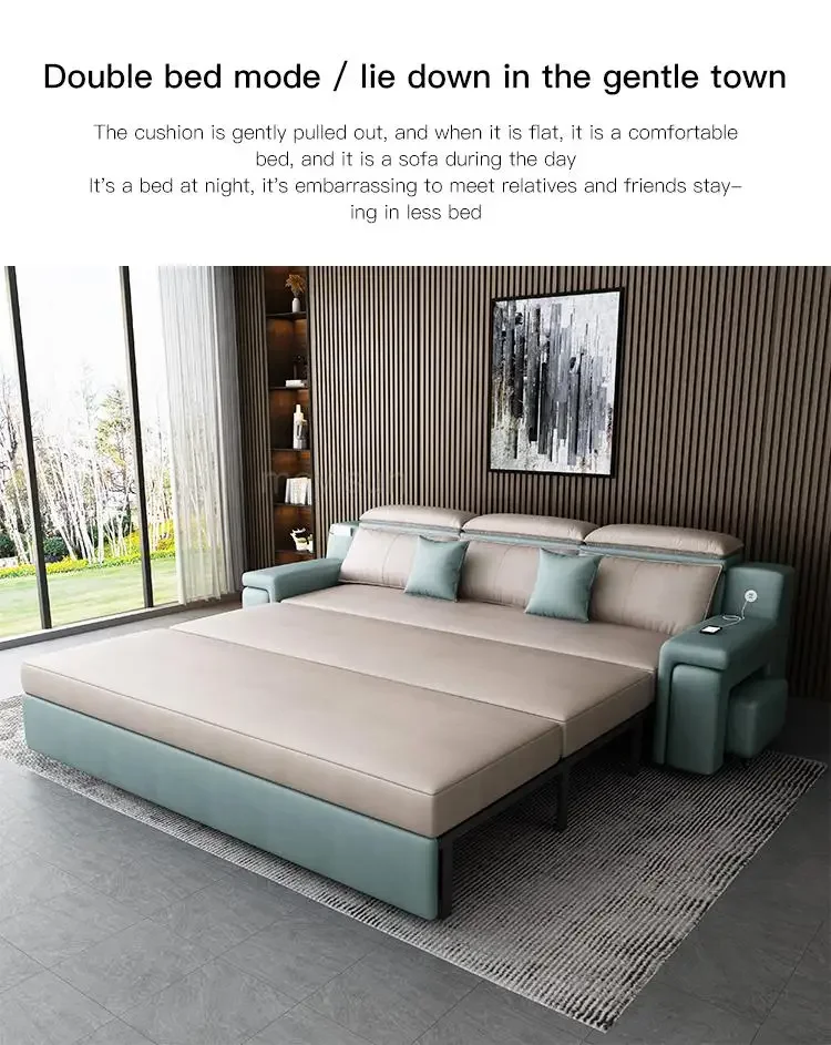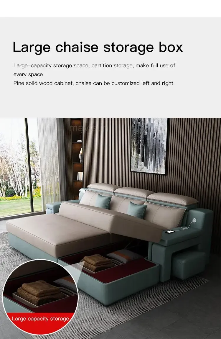 Modern Multifunctional Technology Cloth Sofa Bed Living Room Small Apartment Storage Folding Sofa Chaise Smart Home Furniture