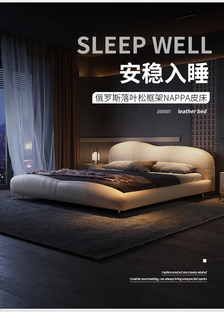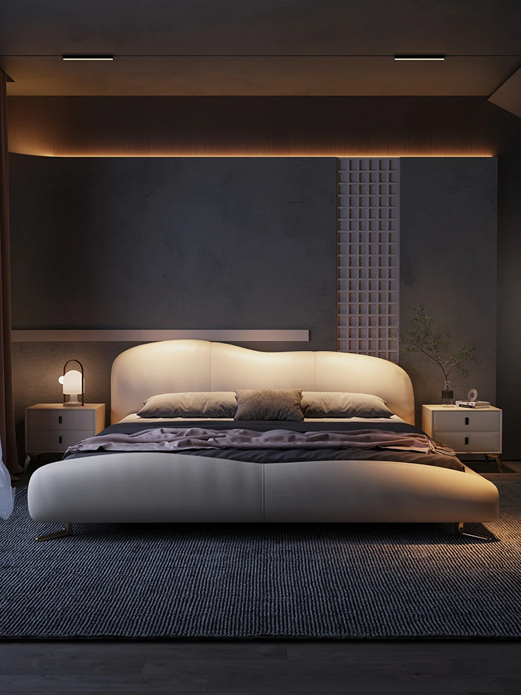 Nordic Unique Aesthetic Bed Storage Metal Minimalist Queen King Bed Modern Wood Leather Cama Matrimonial Bedroom Furniture