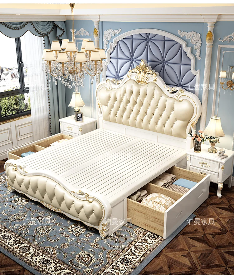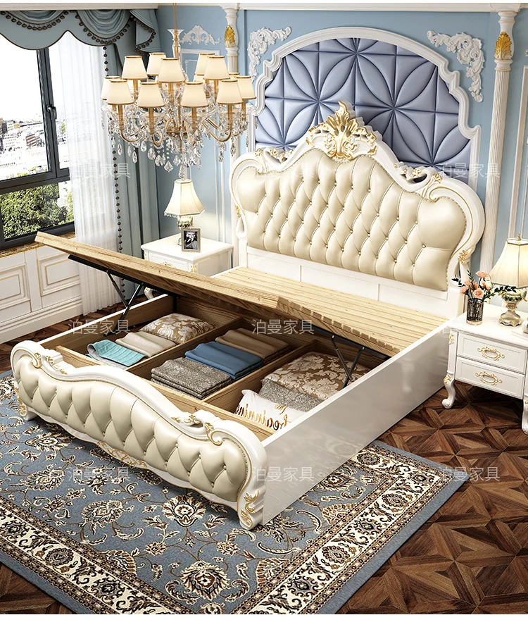 Nordic Unique Bedrooms Bed Under Storage Queen Cheap Upholstered King Bed Luxury Princess Letto Matrimoniale Bedroom Furniture
