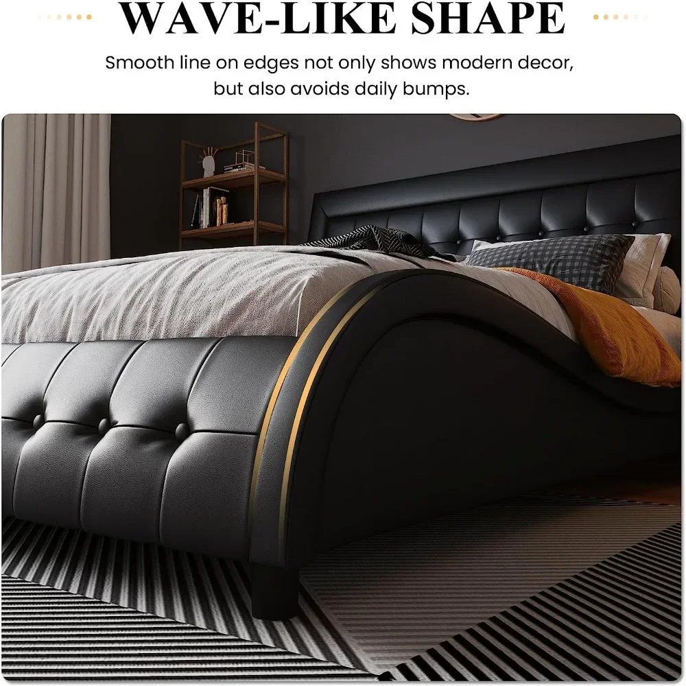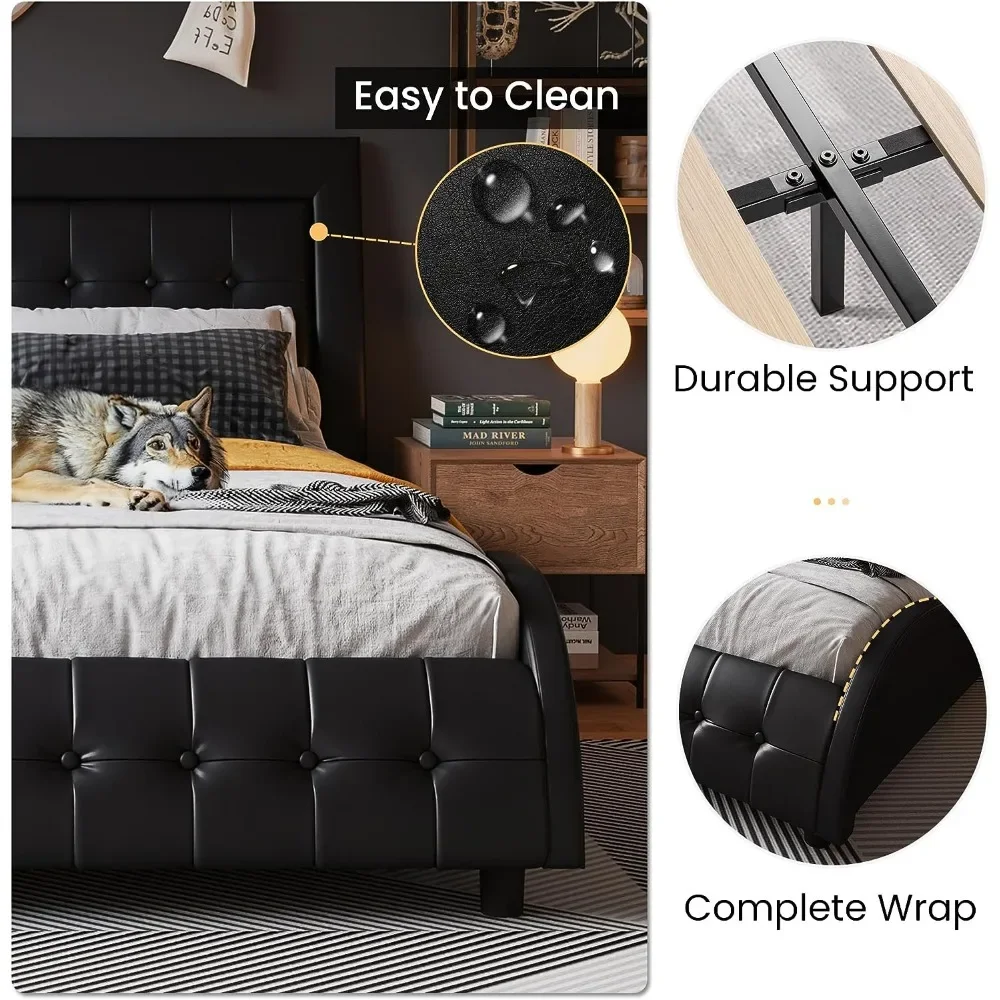 - 【Modern Design】A striking black deluxe faux leather upholstery and padded headboard with vertical stitching, this bed is the perfect way to upgrade your bedroom's look.