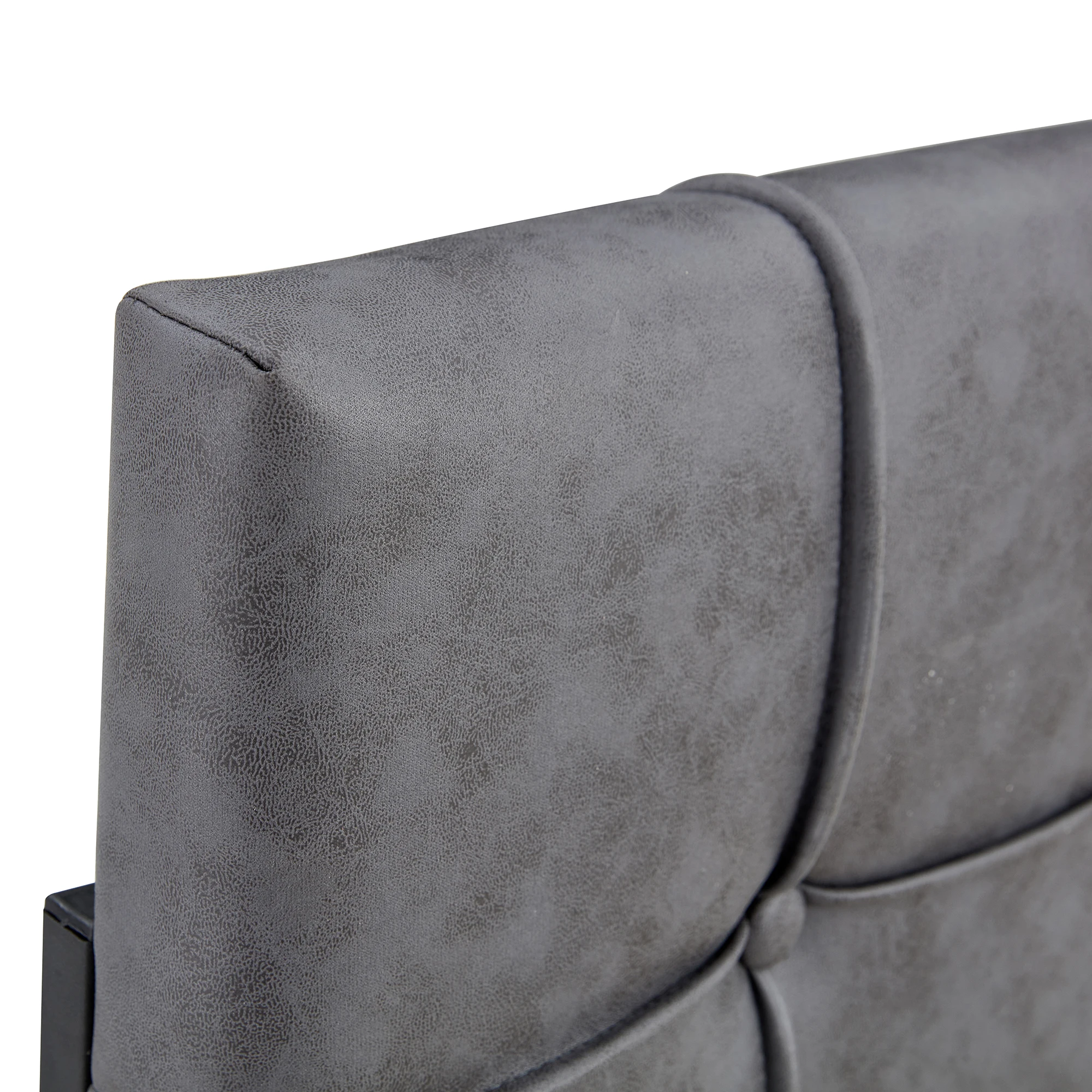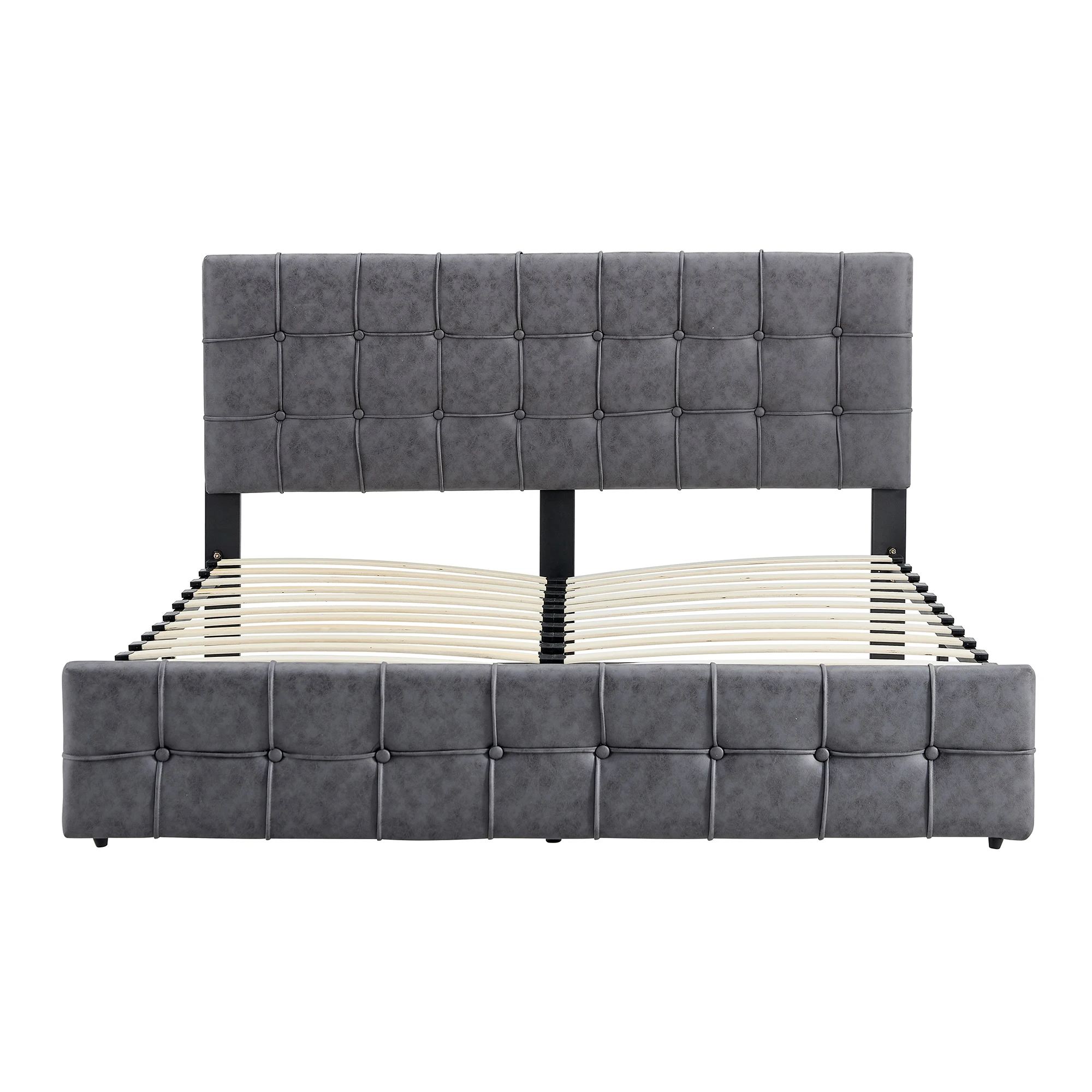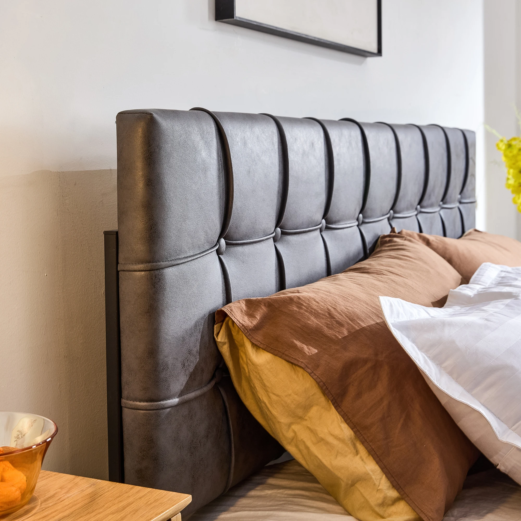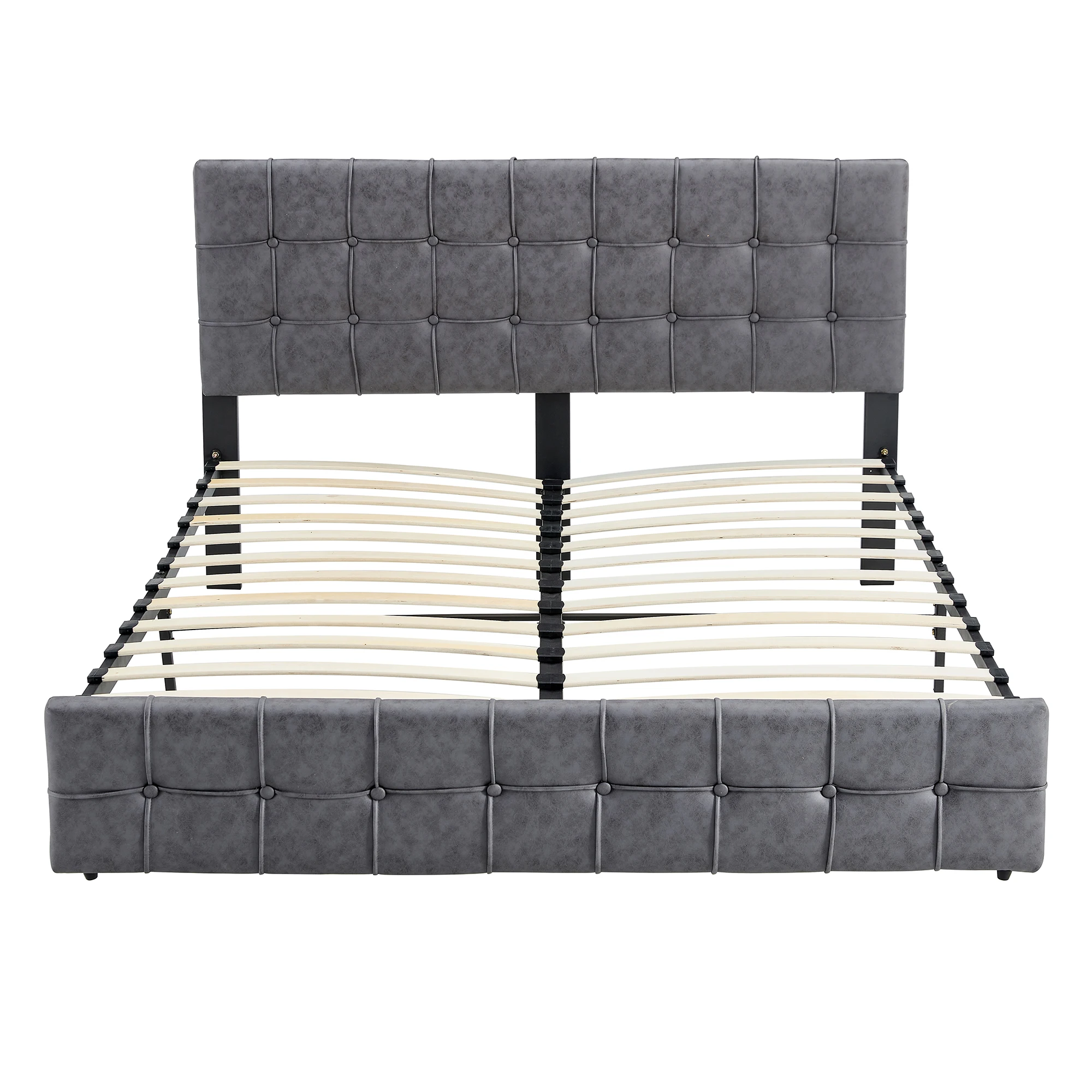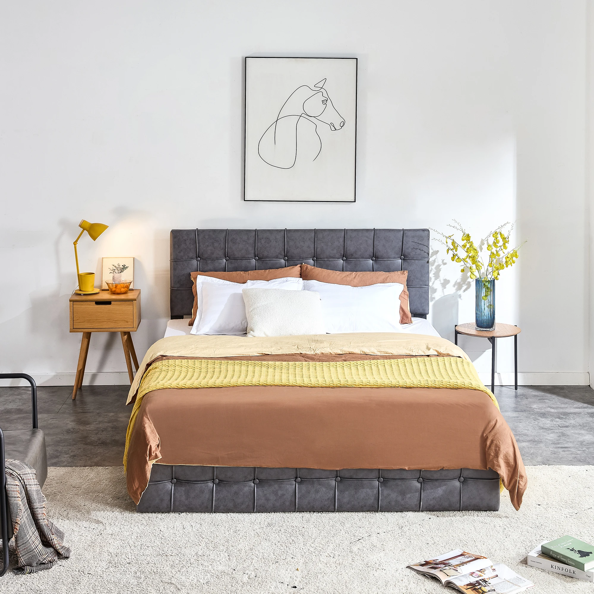 Queen/Full Bed Frame Modern Tech cloth Upholstered Platform Bed W/Adjustable Headboard Heavy Duty Button Wood Slat Support Grey