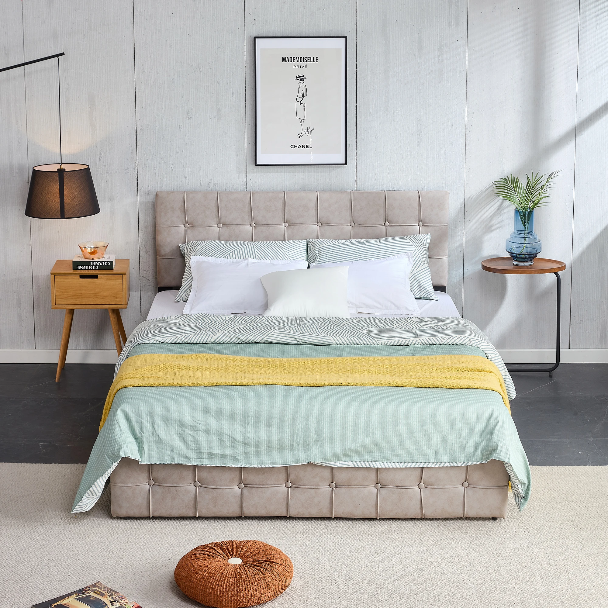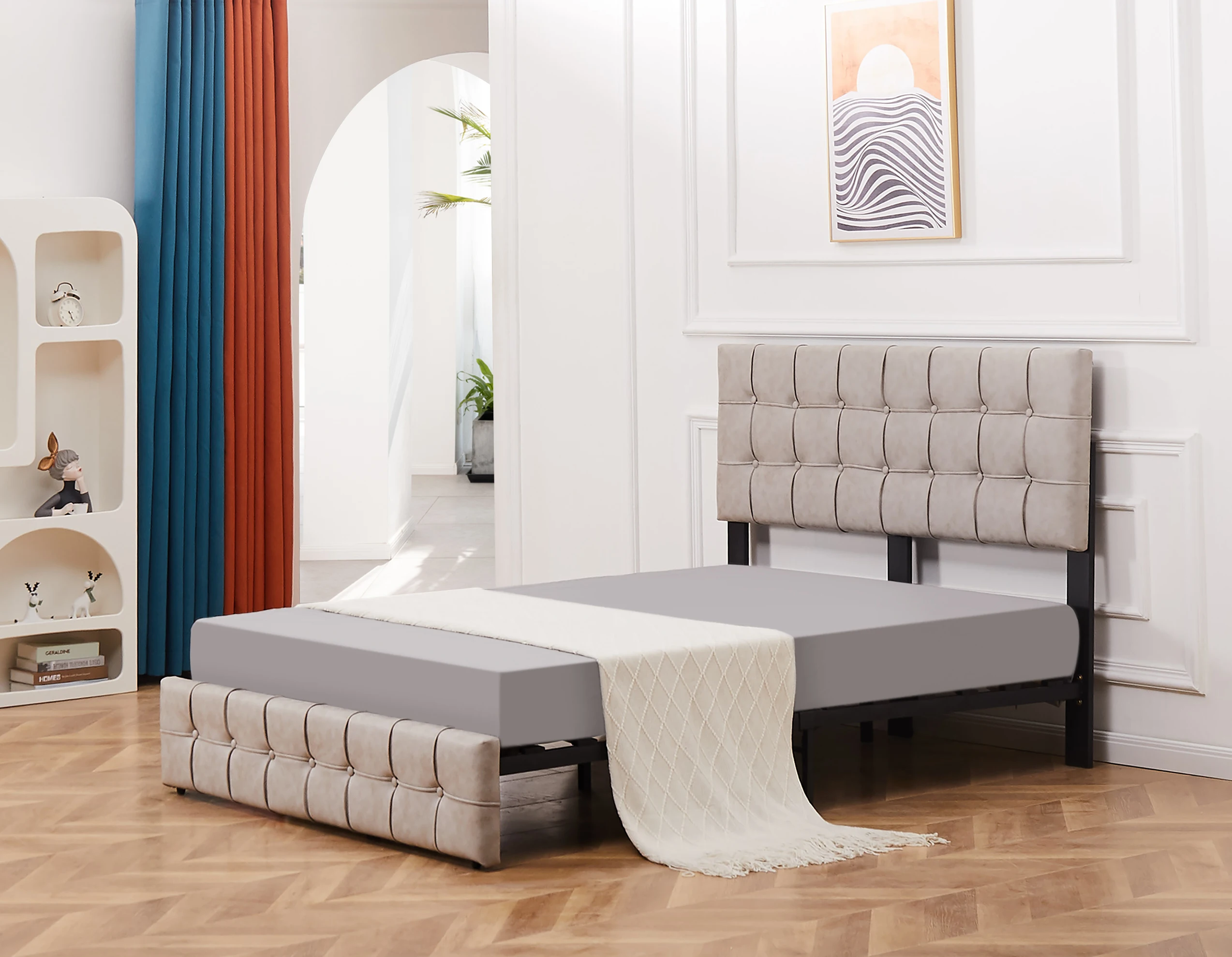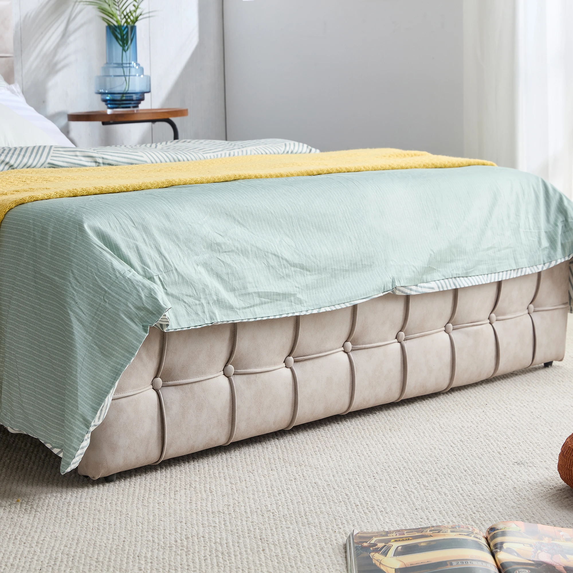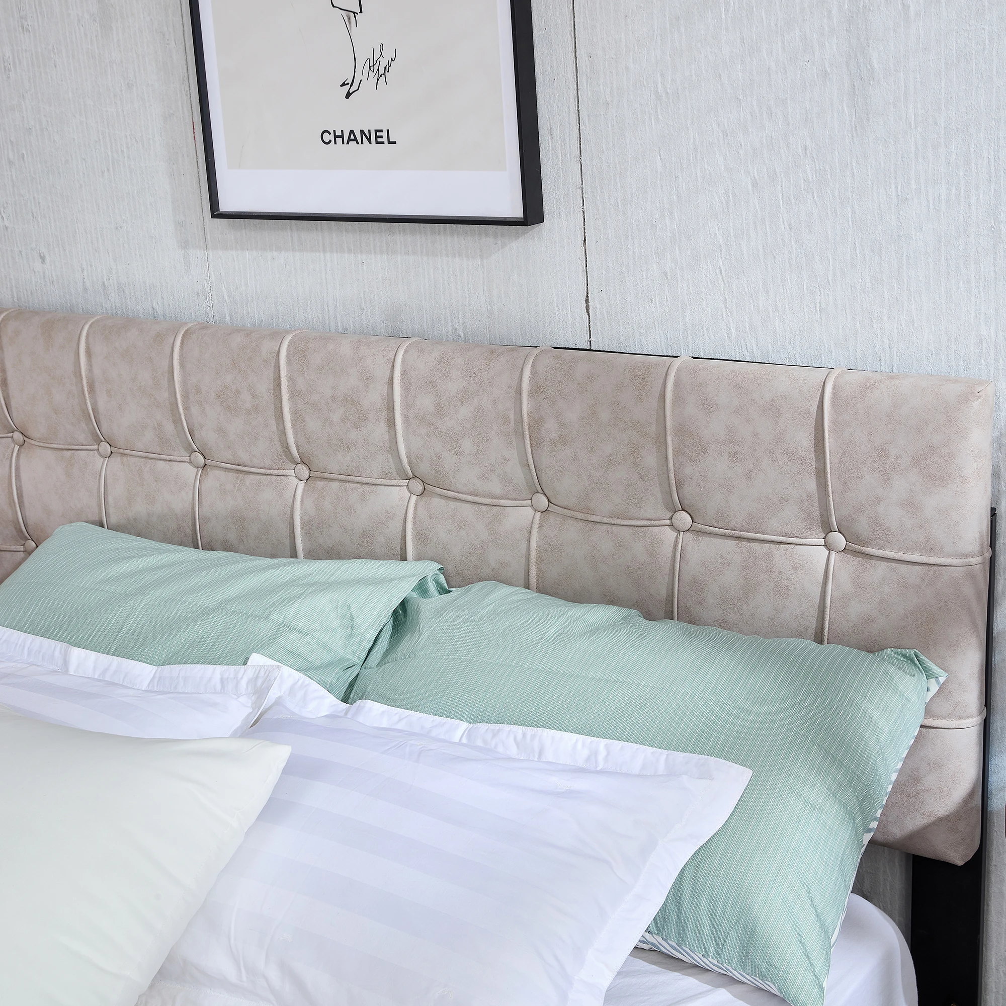[Flash Sale]Queen/Full Bed Frame Modern Tech cloth Upholstered Platform Bed W/Adjustable Headboard Heavy Duty Button Wood Slat Support Grey/Beige Easy Assembly No Box Spring Needed[US-W]
