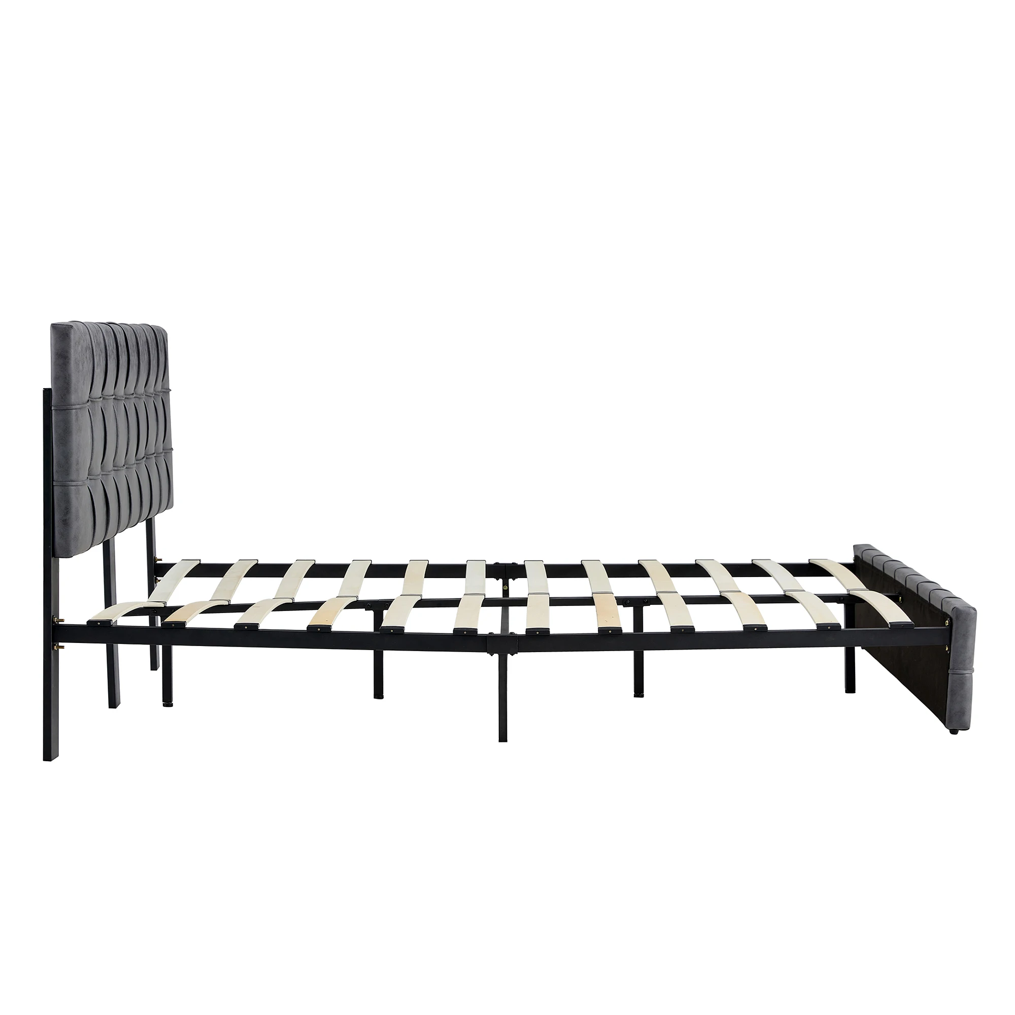 【Solid construction】 Made of plywood, the wooden upholstered platform bed provides dense and strong support. The platform bed creates a strong foundation and reliable support because it contains 12 pcs wooden slats and a metal frame, promoting long-lasting performance and enjoyment.