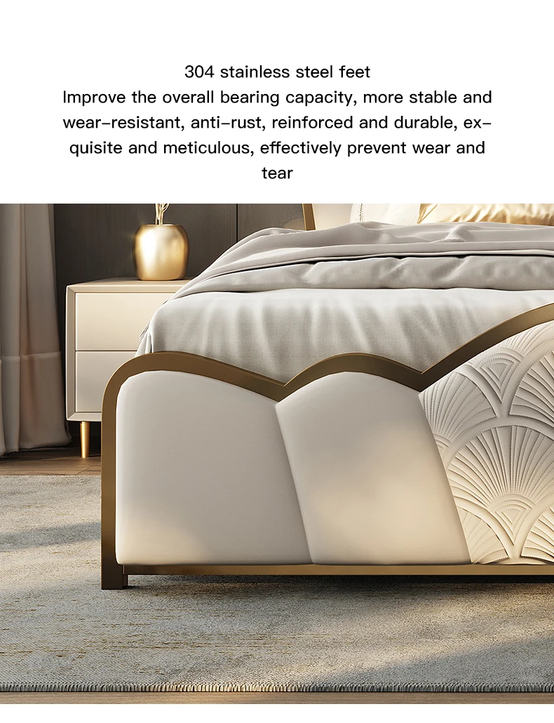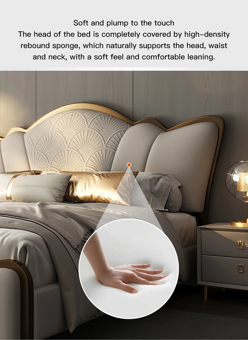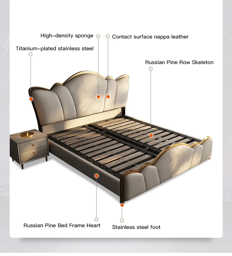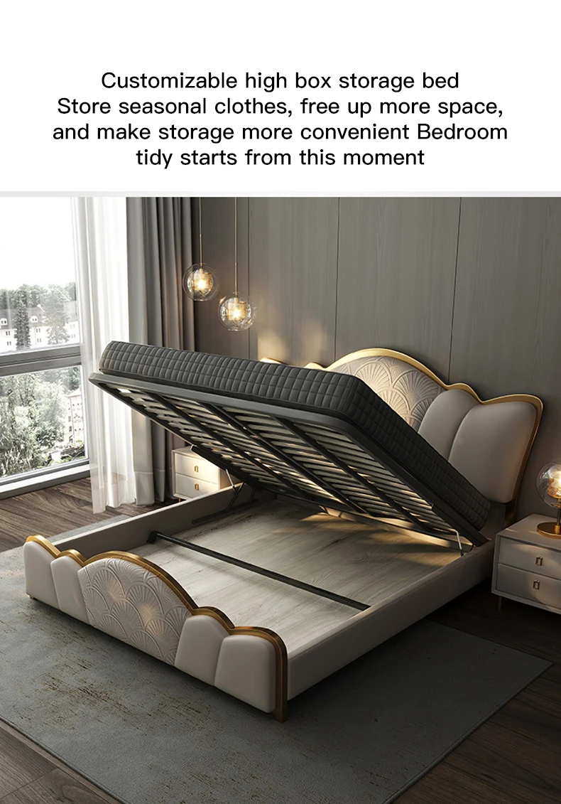 Simplicity Bedroom Set Furniture Italian Leather Wooden Frames Stable Skeleton Large Storage Soft Mattress Modern King Size Bed